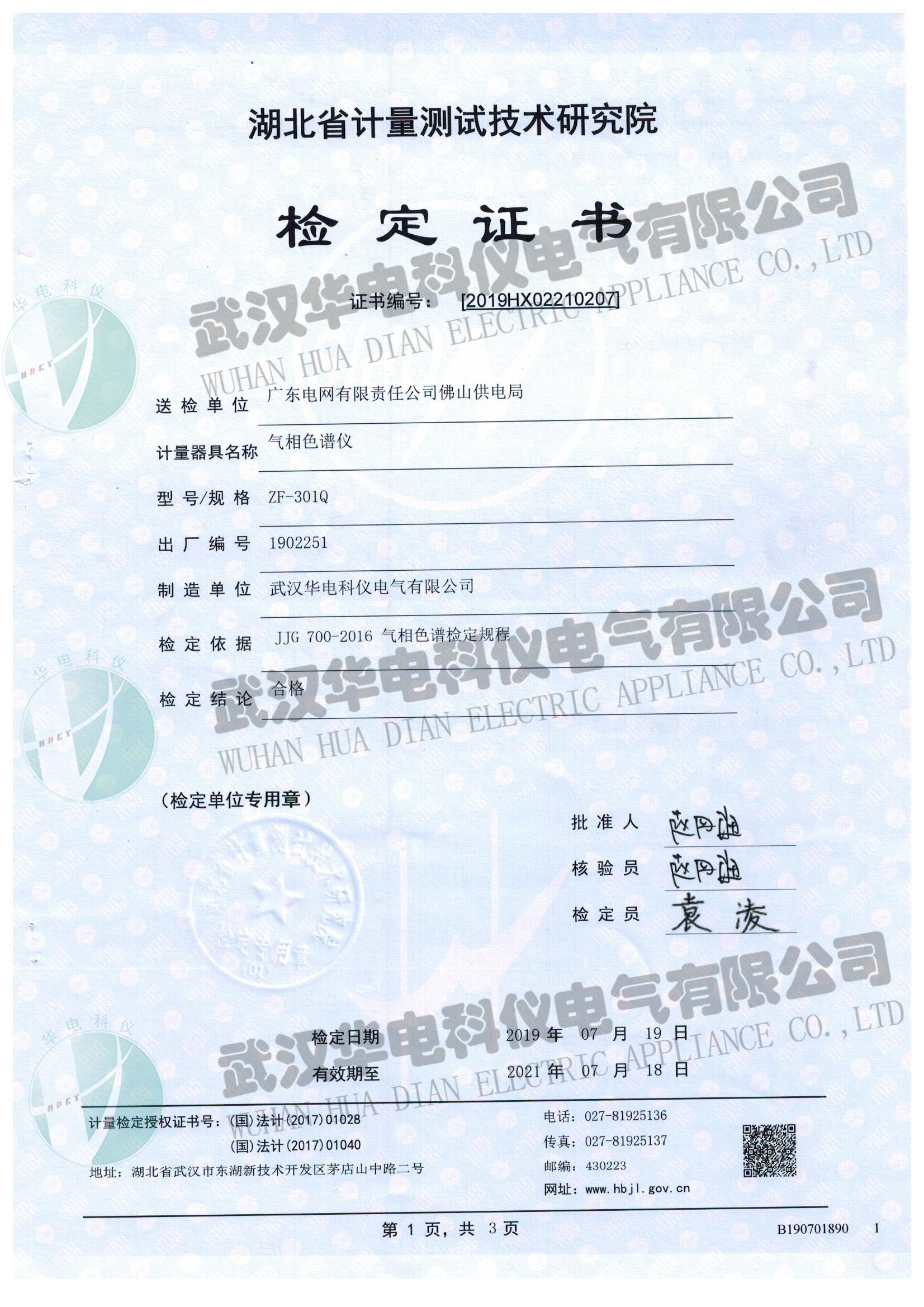 校驗(yàn)證書
