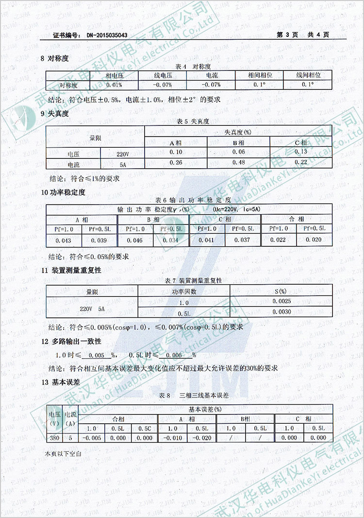 HKDZ-600A電能質量監(jiān)測裝置檢驗報告