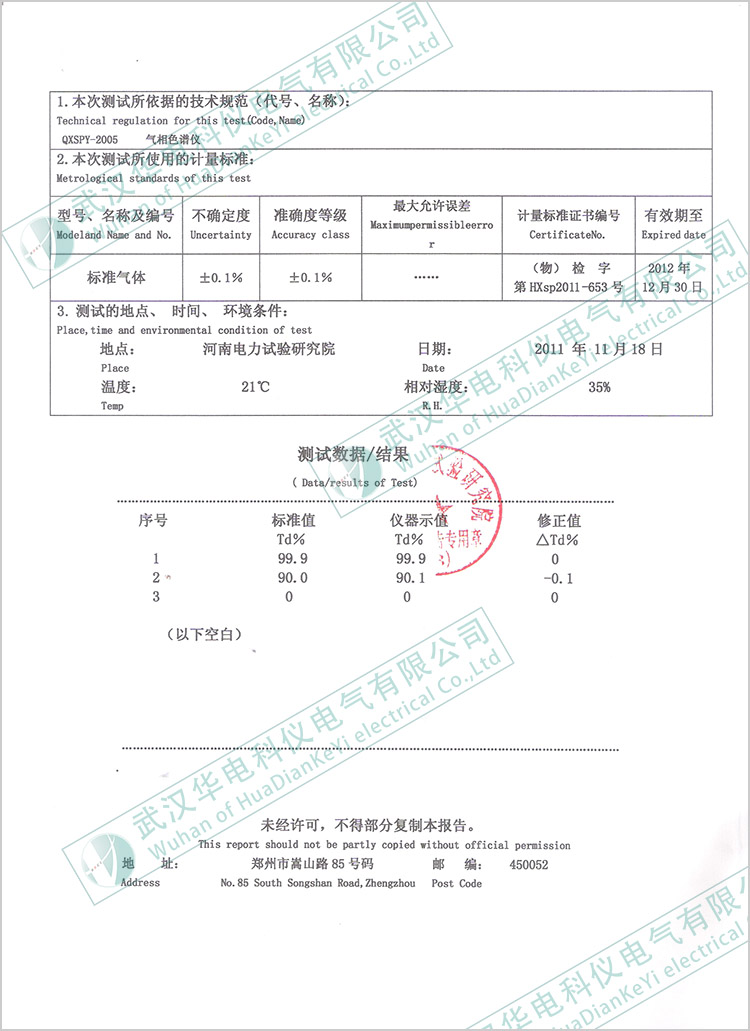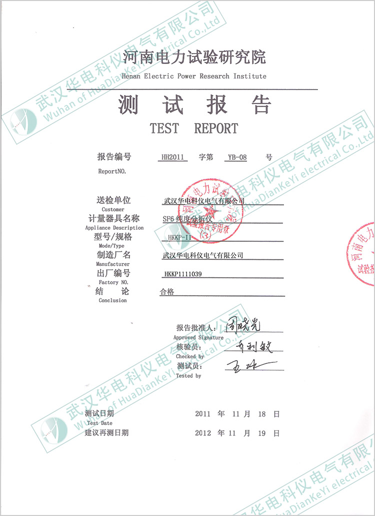 HKKP-IISF6氣體純度分析儀測(cè)試報(bào)告