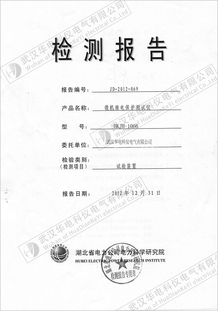 HKJB-1066繼電保護(hù)測(cè)試儀檢測(cè)報(bào)告