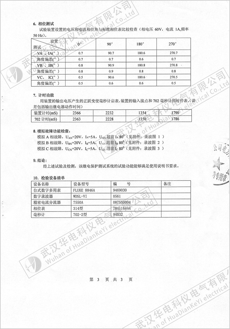 HKJB-1600繼電保護(hù)測(cè)試儀檢定報(bào)告