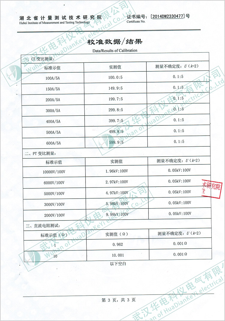 HKHL-100A回路電阻測試儀校準(zhǔn)證書