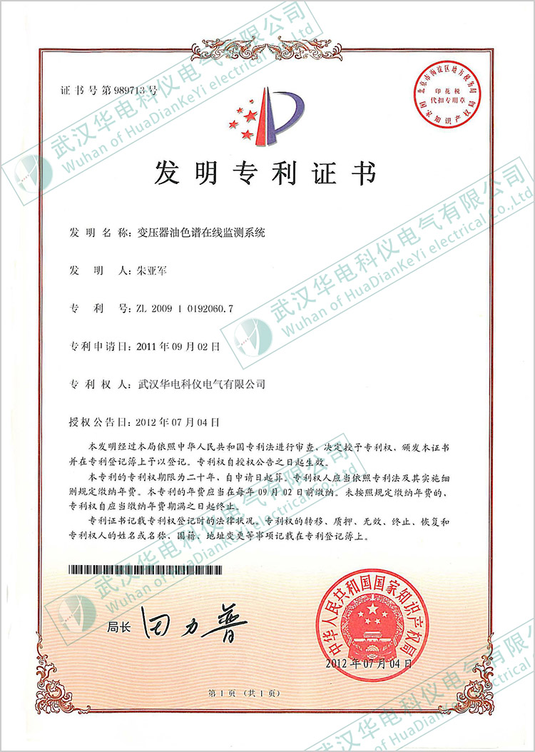 油色譜在線監(jiān)測專利及檢定報(bào)告