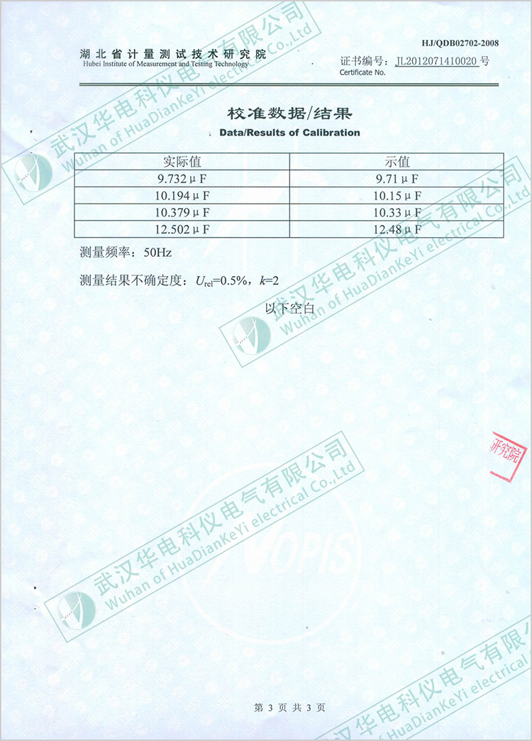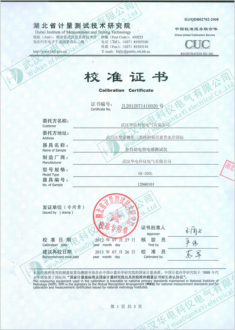 HK-500L全自動(dòng)電容電感測(cè)試儀檢定報(bào)告