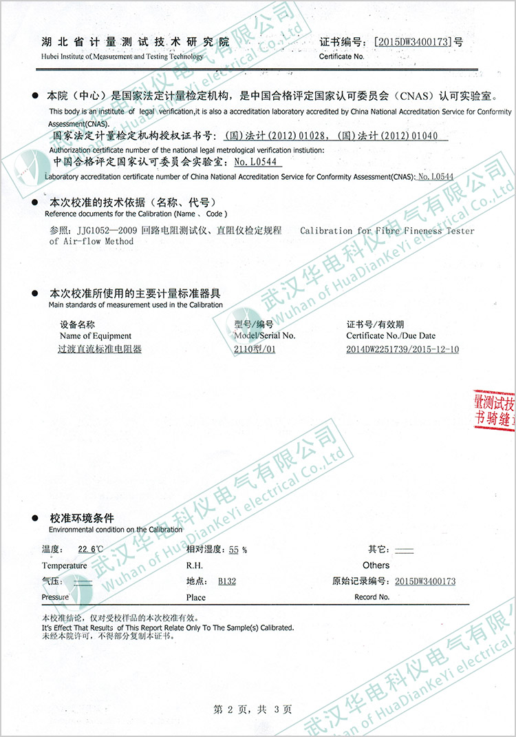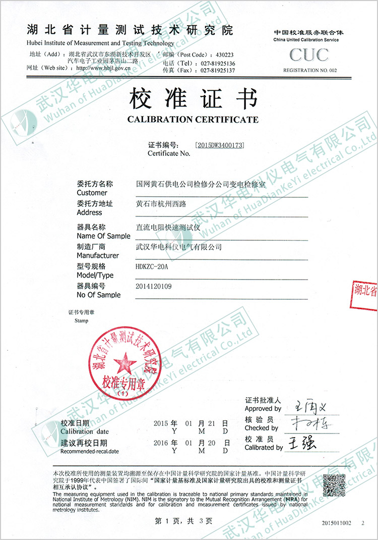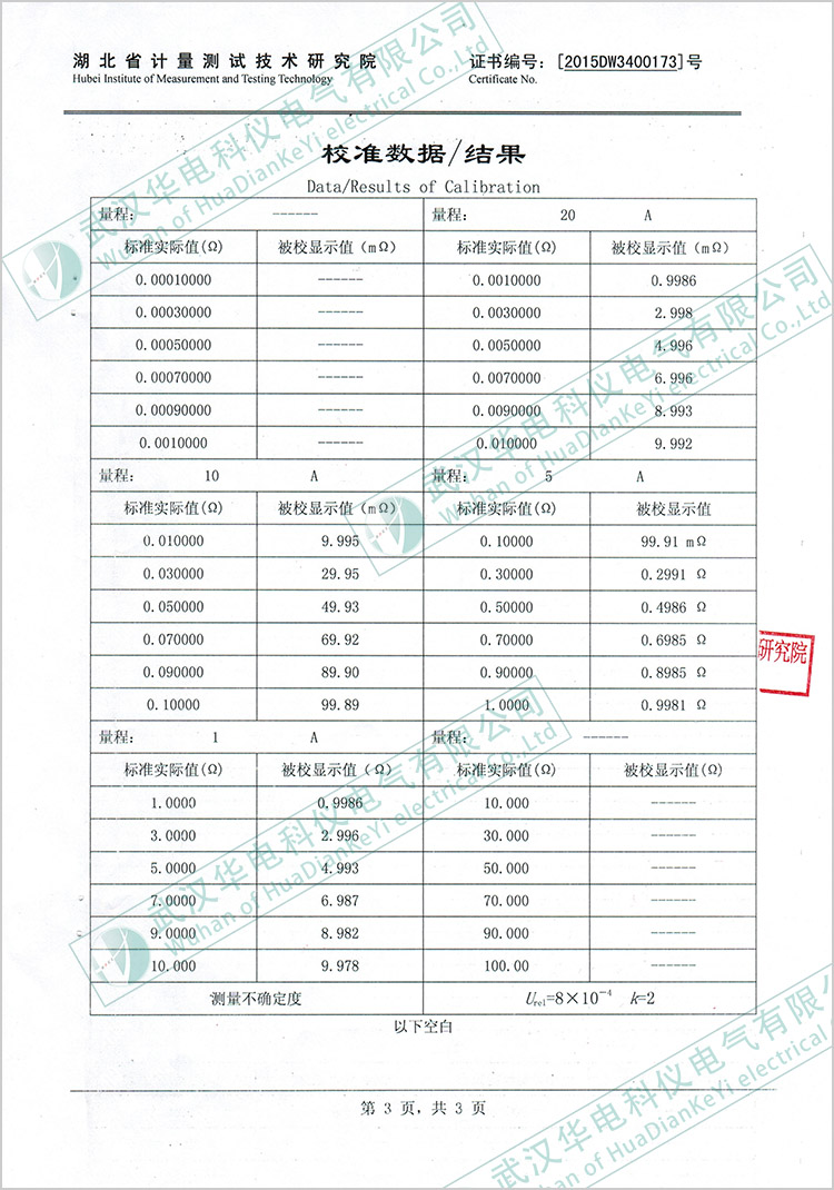 HDKZC-20A直流電阻快速測(cè)試儀校準(zhǔn)證書