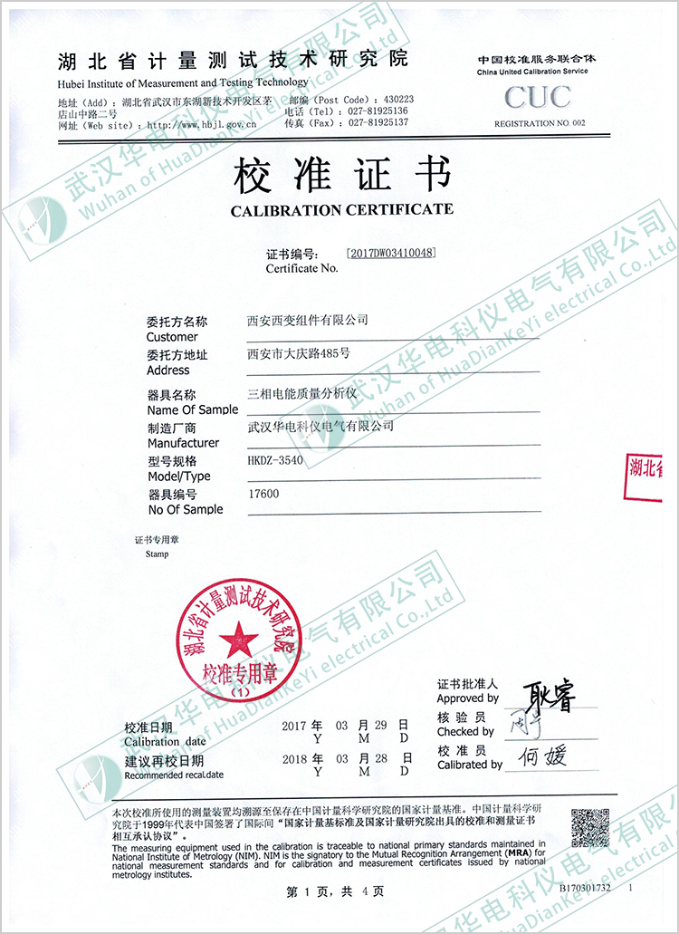 HKDZ-600A電能質量監(jiān)測裝置檢驗報告