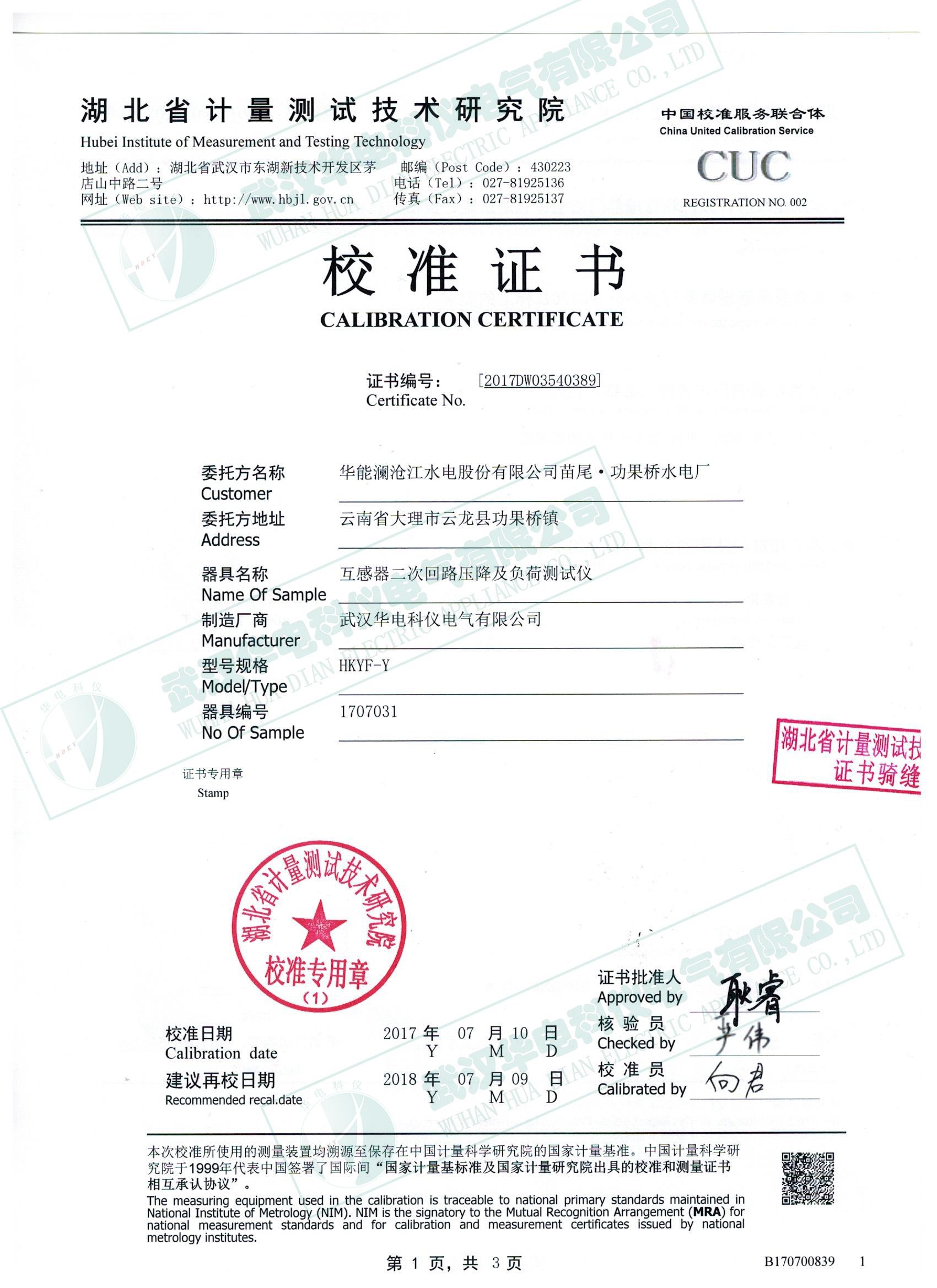 HKYF-Y互感器二次回路壓降及負(fù)荷測試儀檢測報告