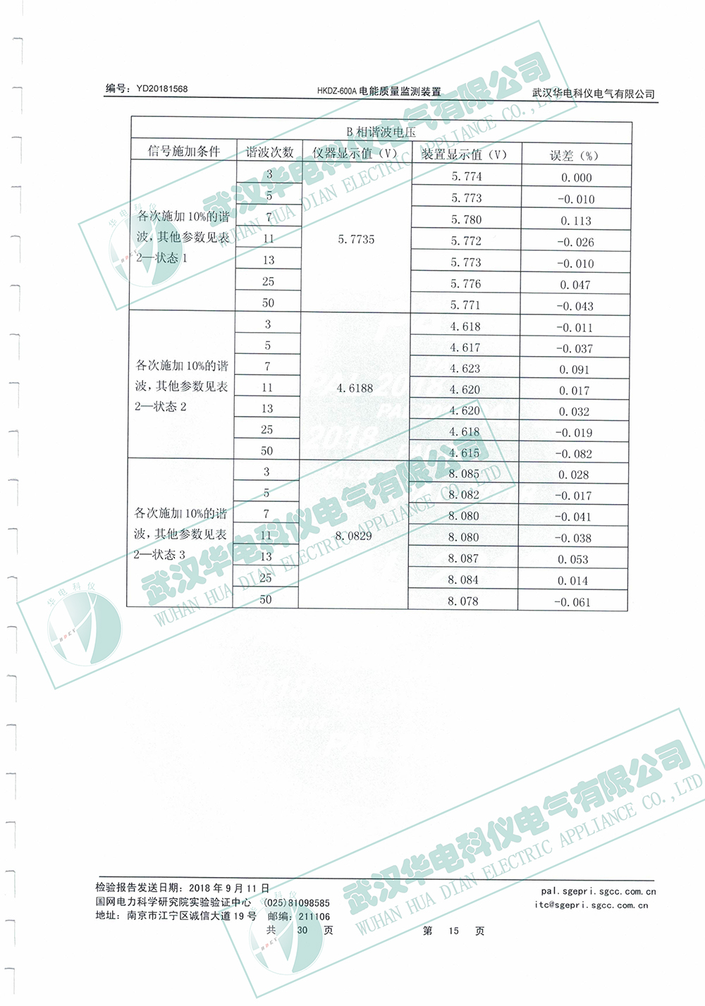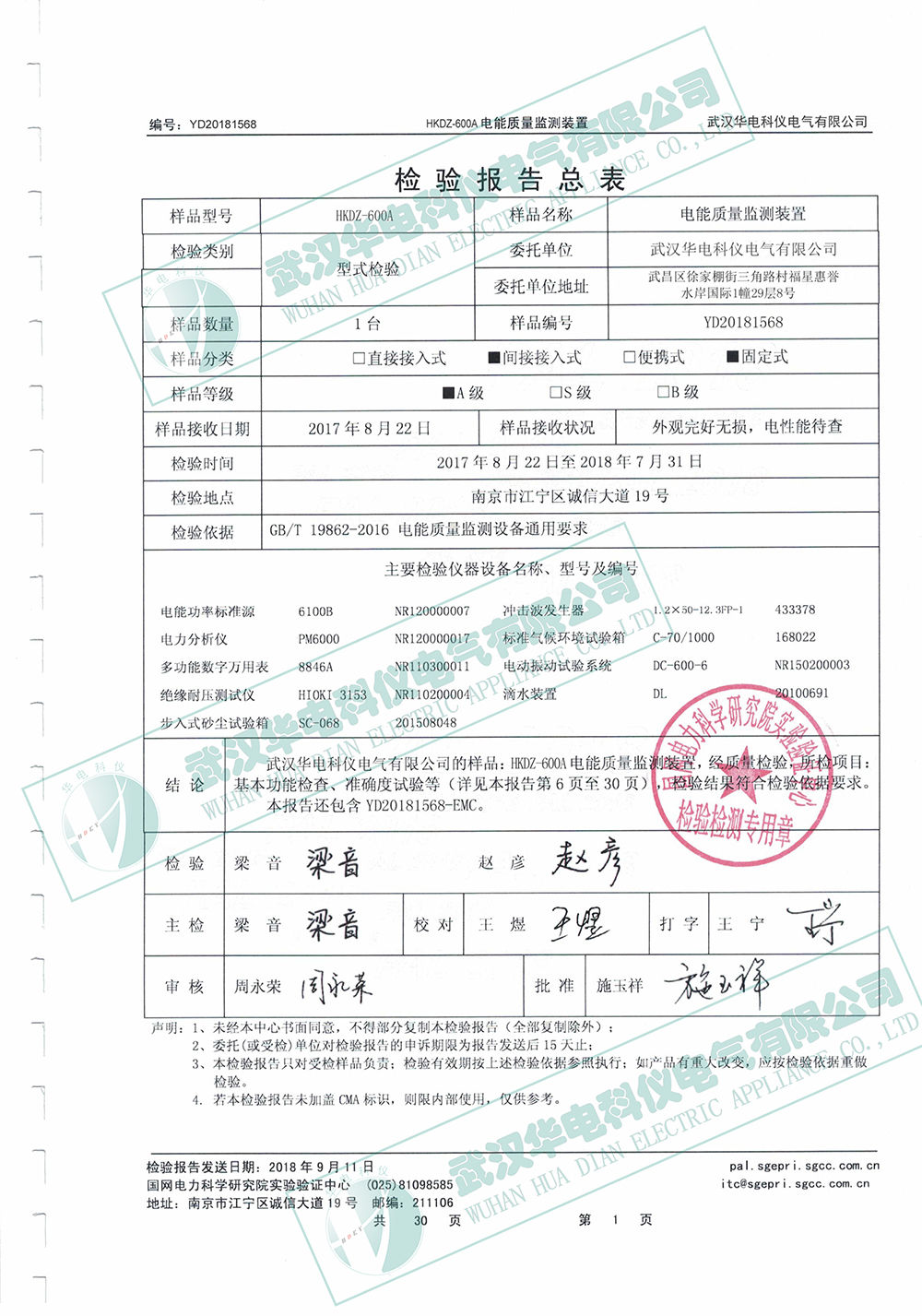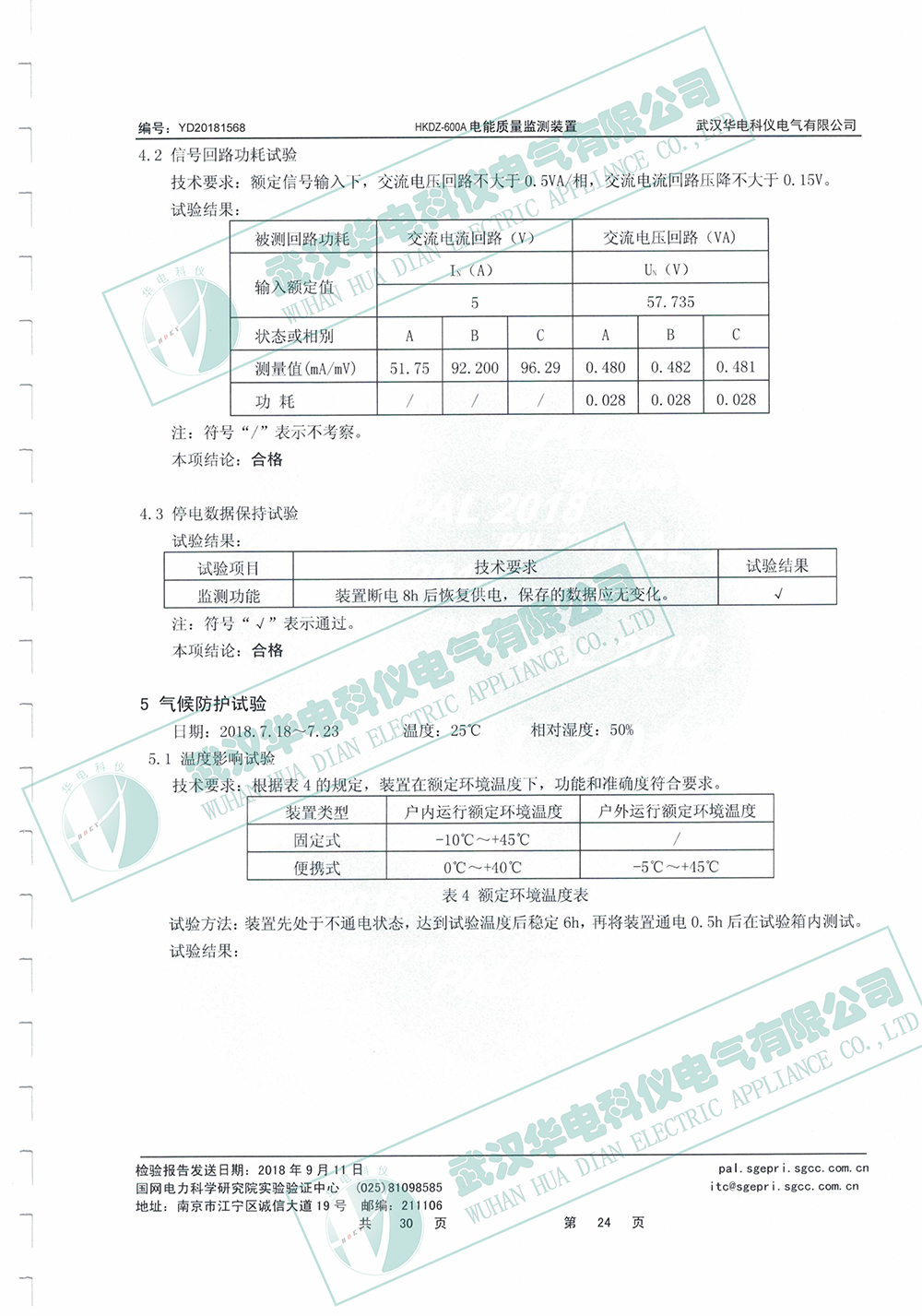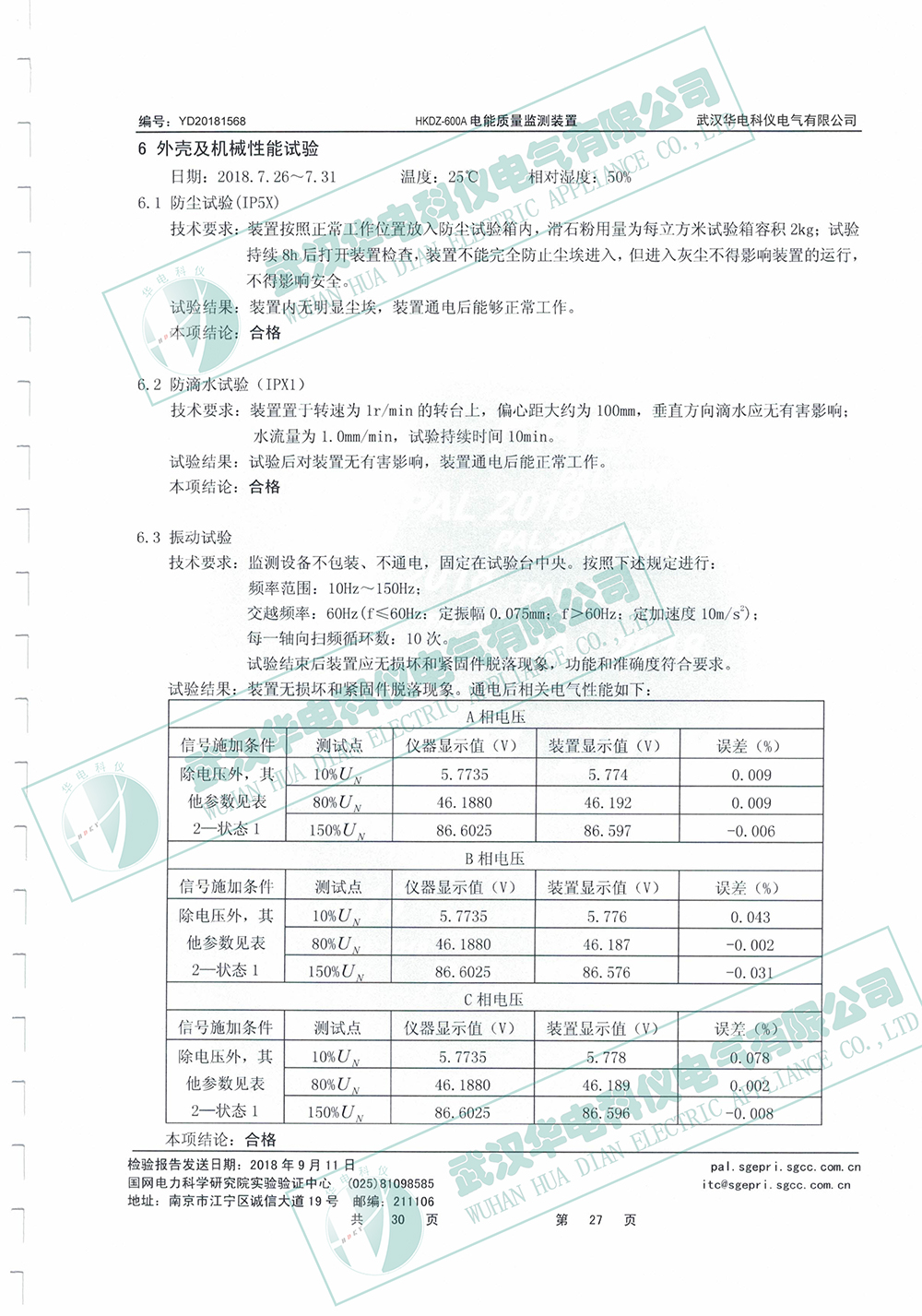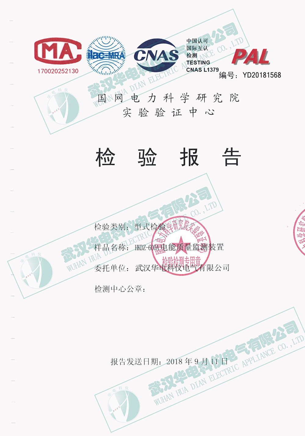 HKDZ-600A電能質(zhì)量監(jiān)測(cè)裝置檢驗(yàn)報(bào)告