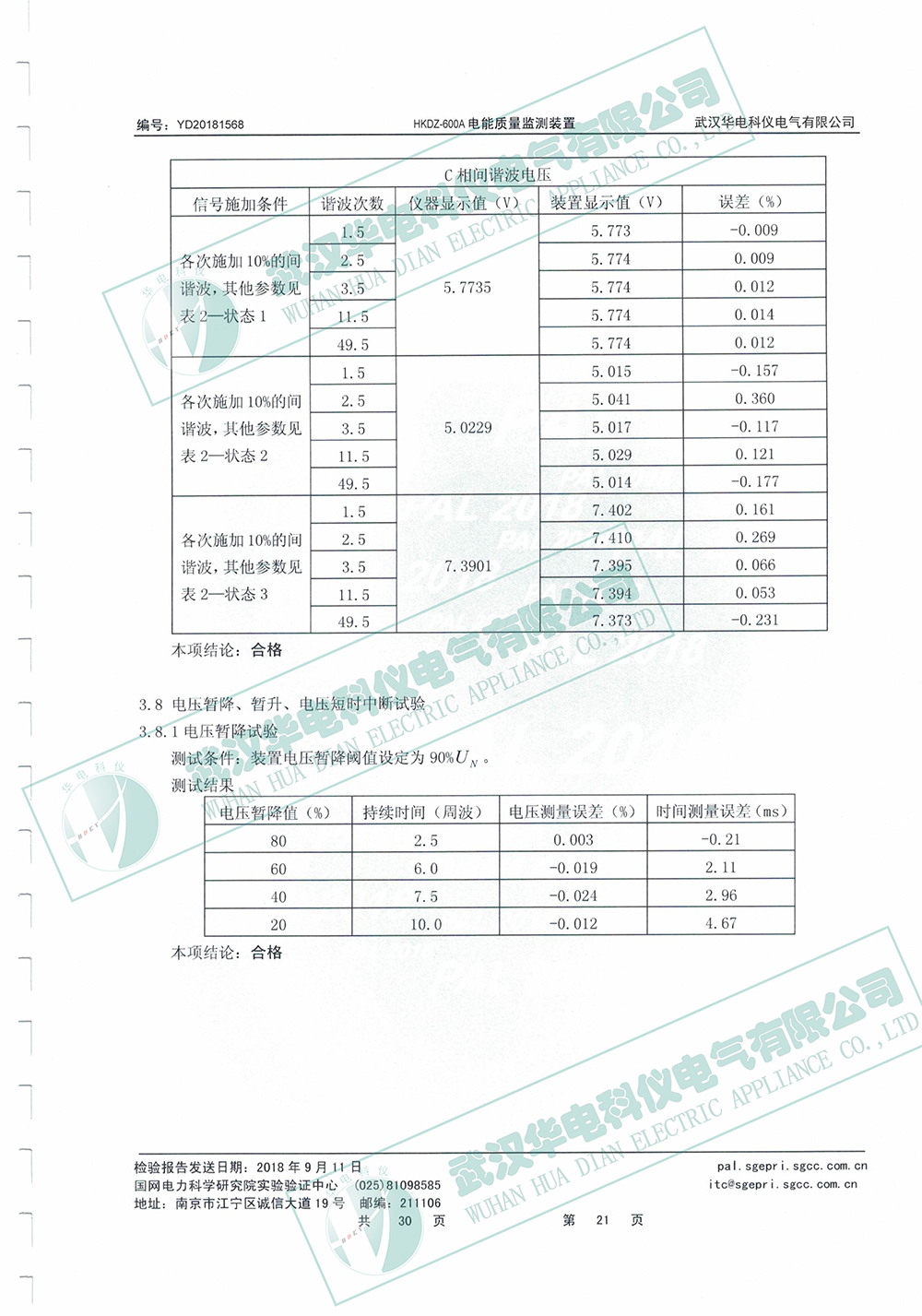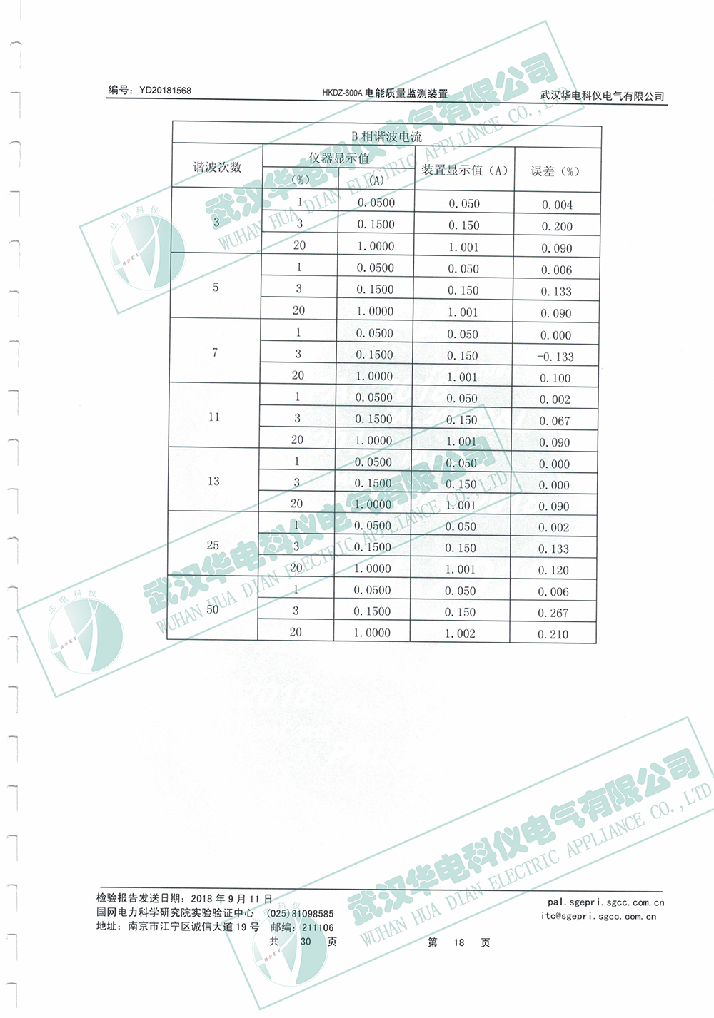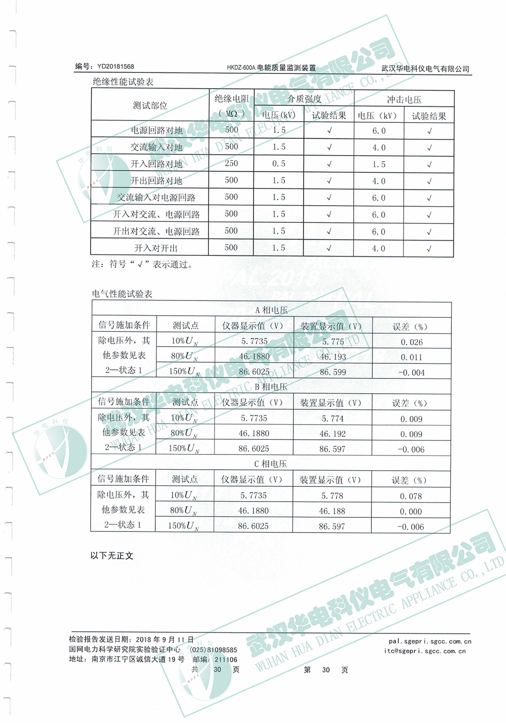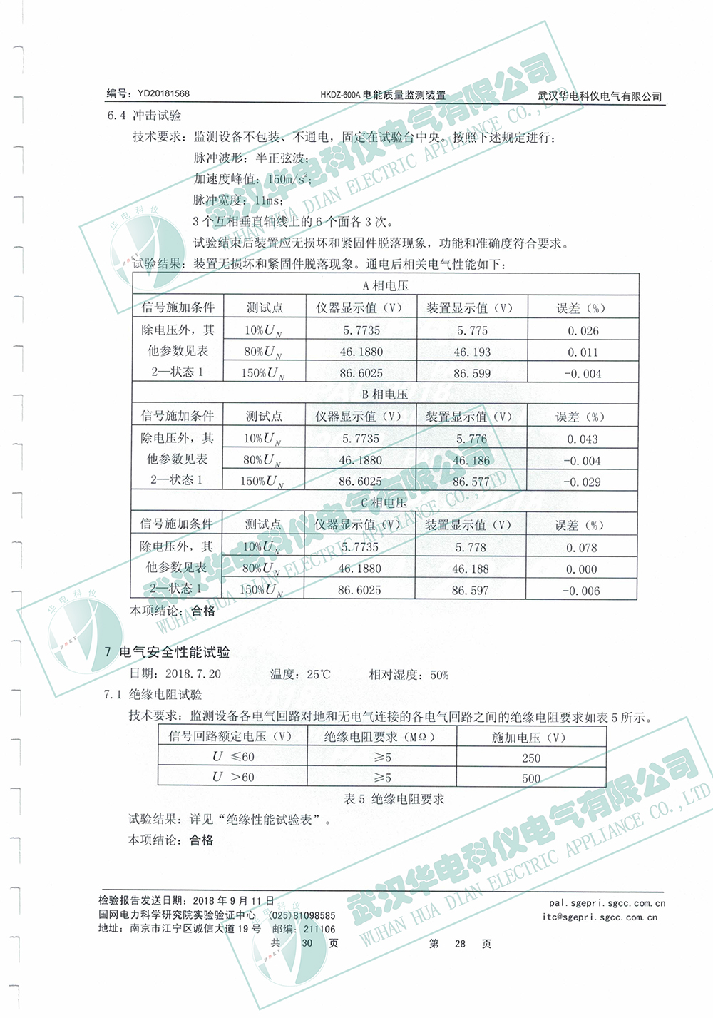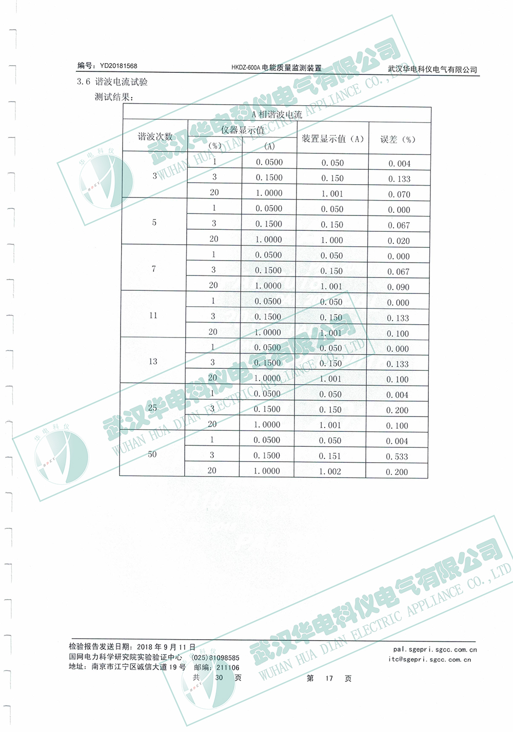 HKDZ-600A電能質(zhì)量監(jiān)測(cè)裝置檢驗(yàn)報(bào)告