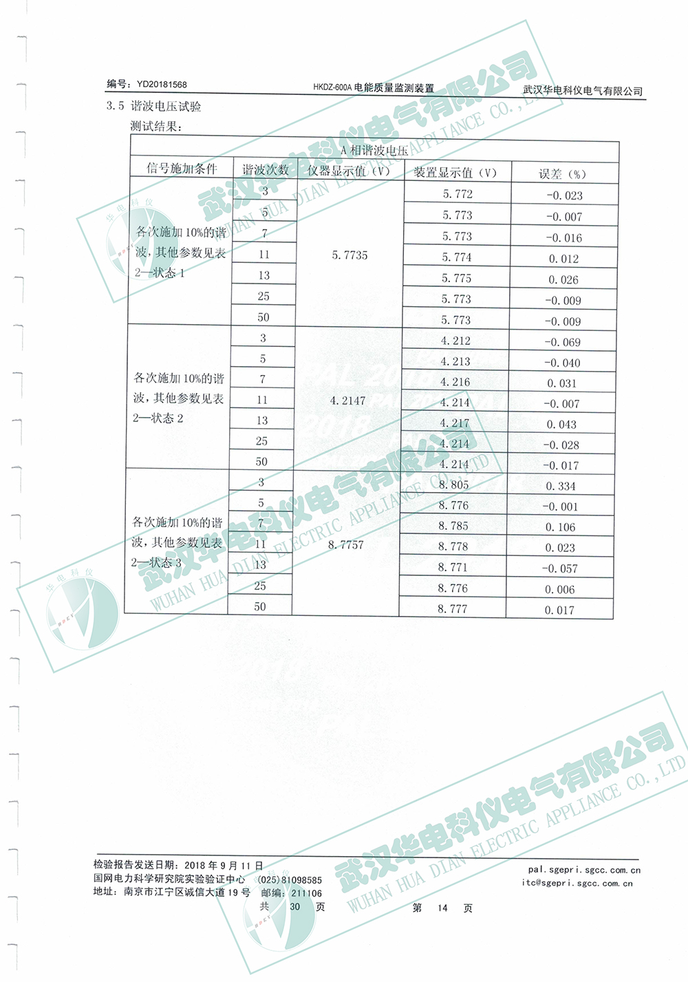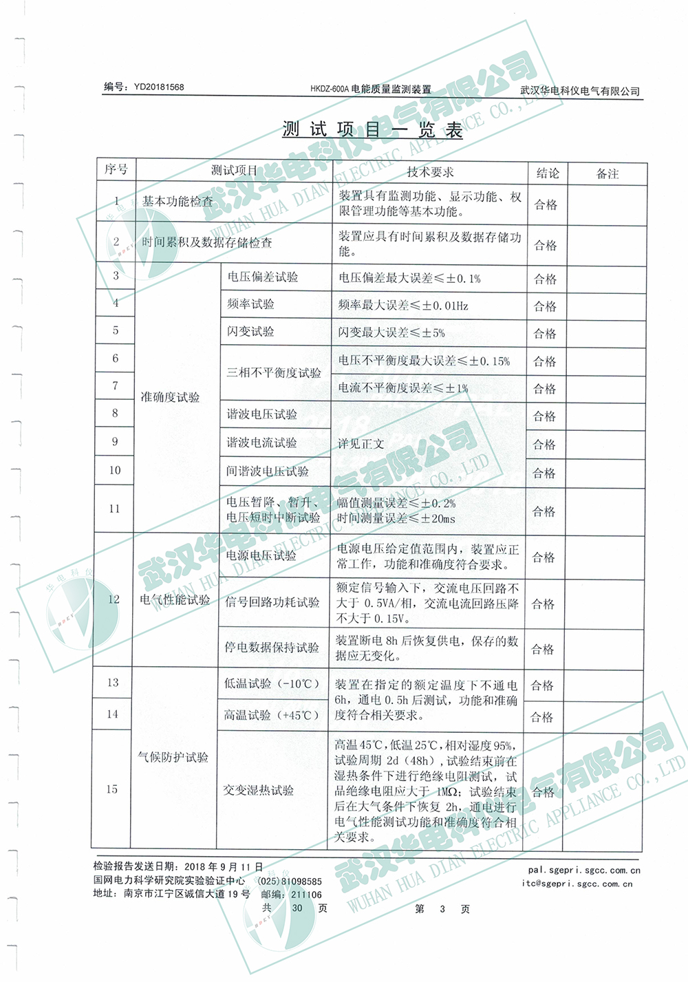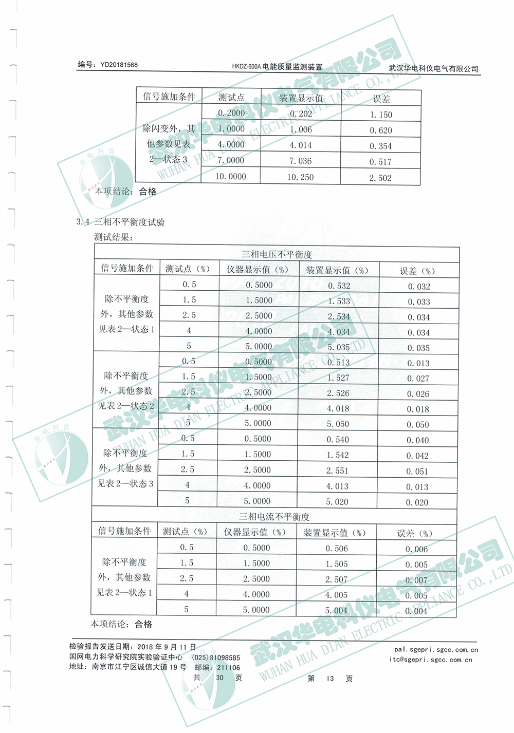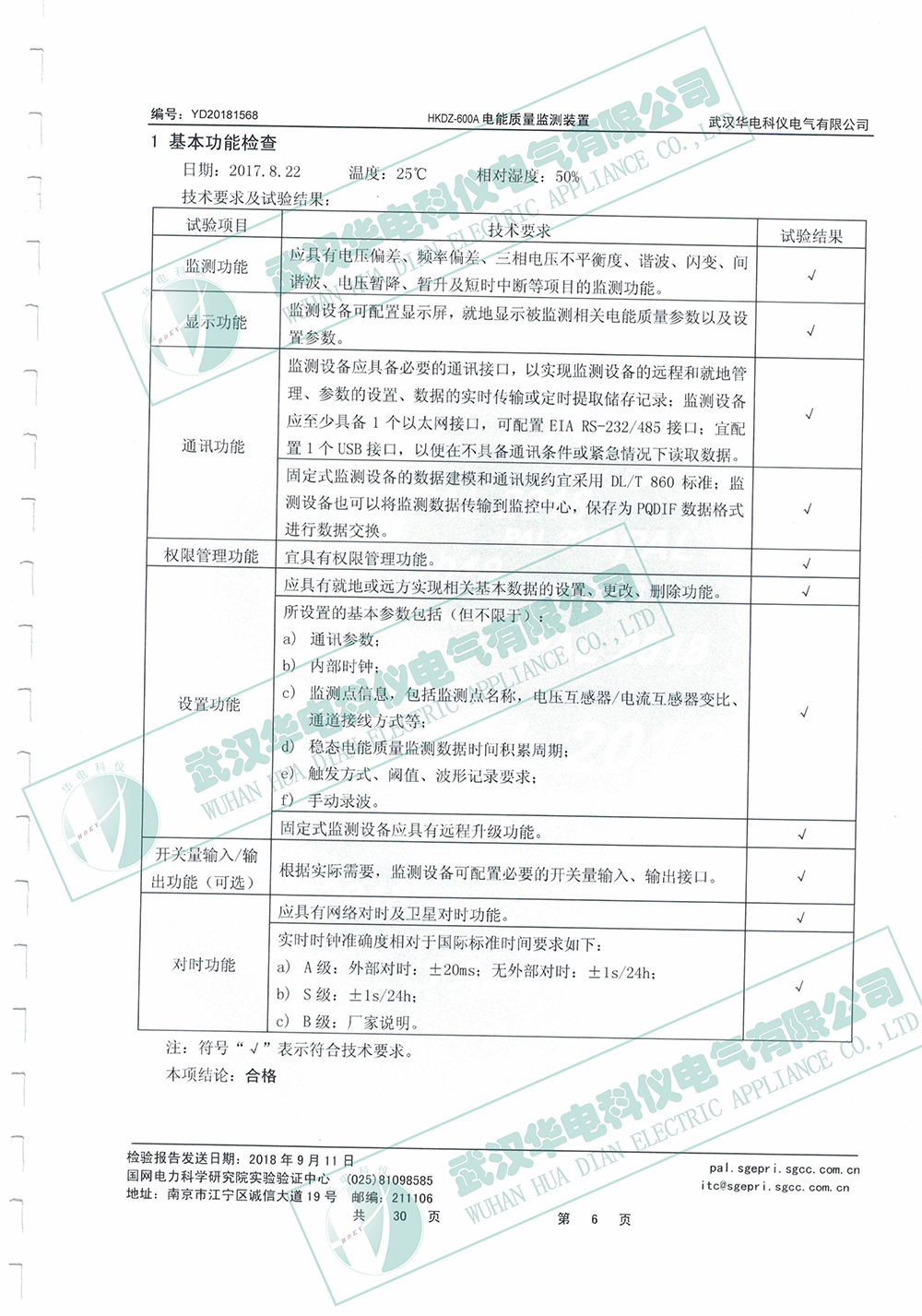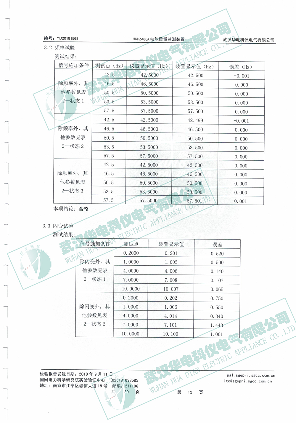 HKDZ-600A電能質(zhì)量監(jiān)測(cè)裝置檢驗(yàn)報(bào)告