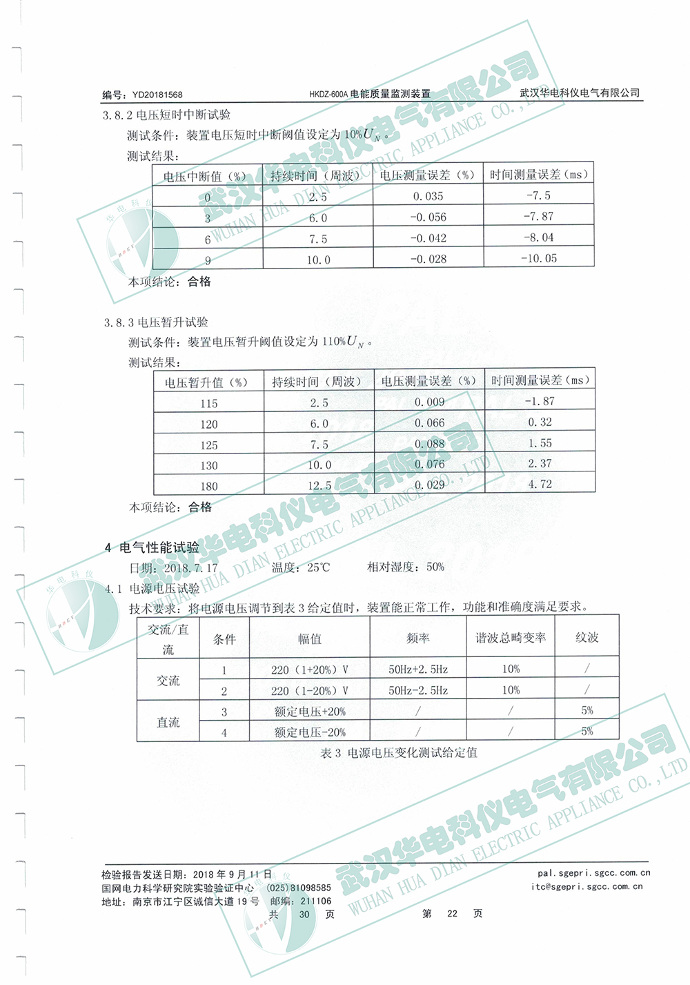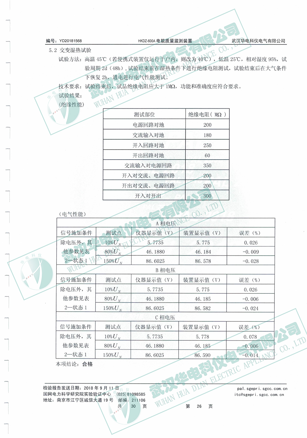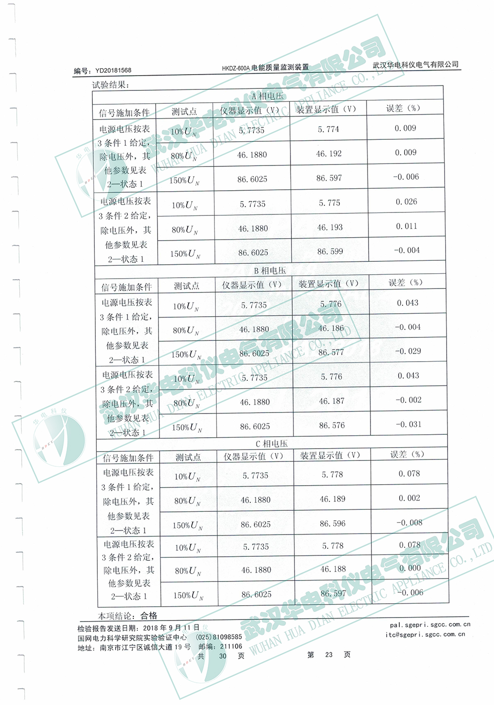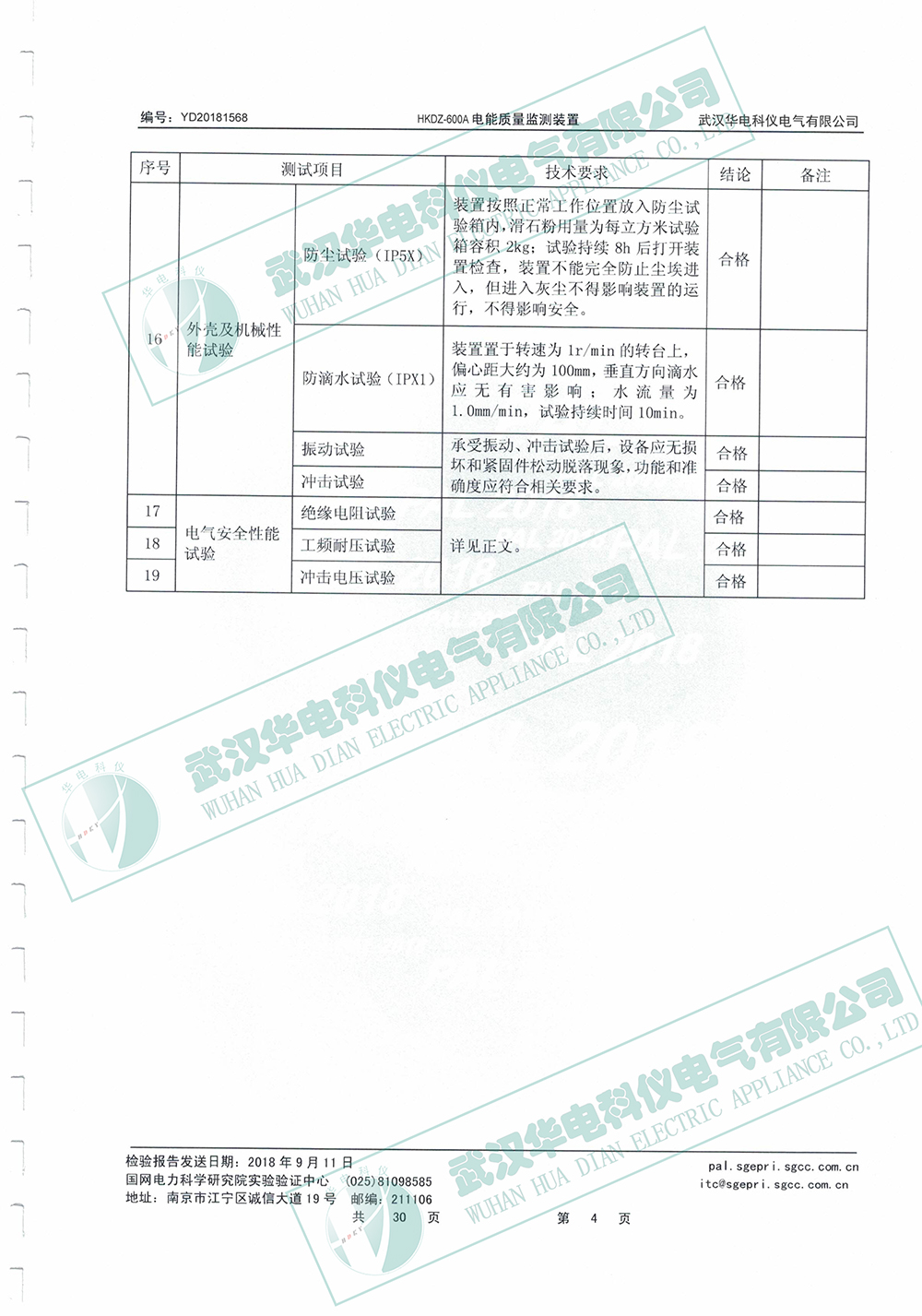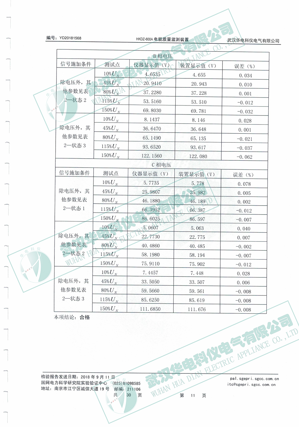 HKDZ-600A電能質(zhì)量監(jiān)測(cè)裝置檢驗(yàn)報(bào)告