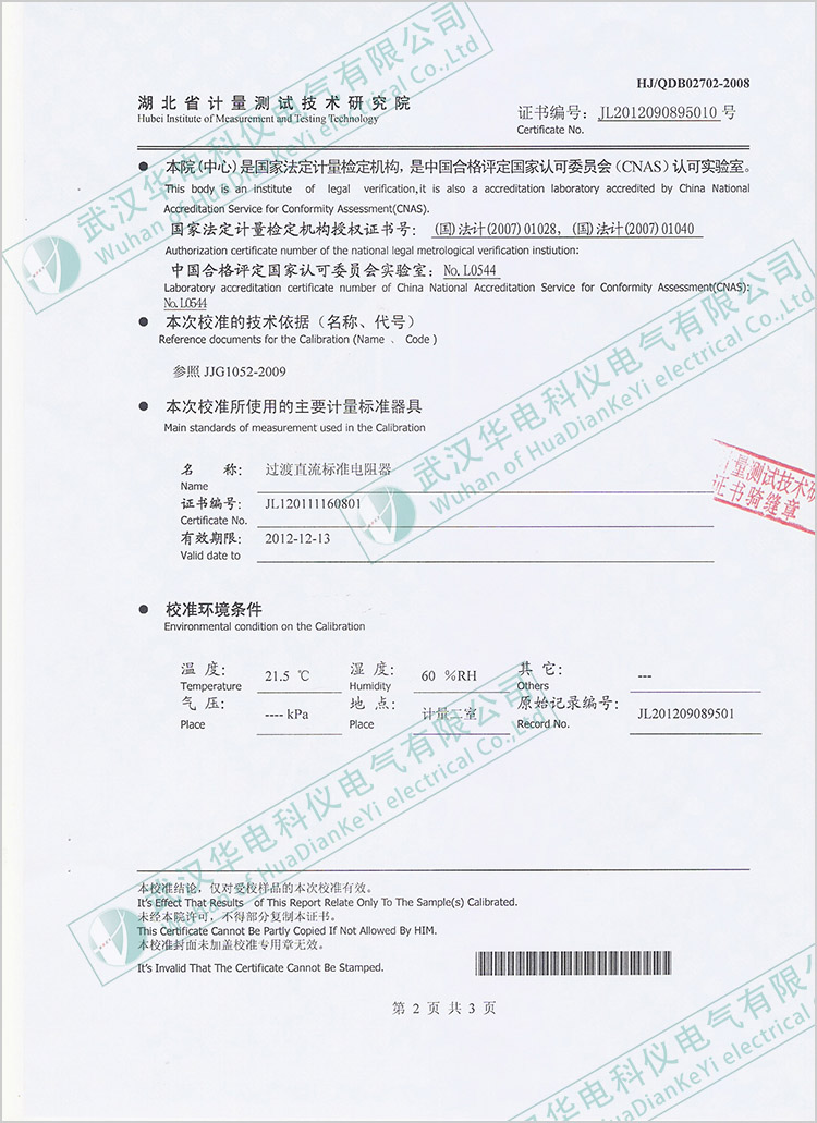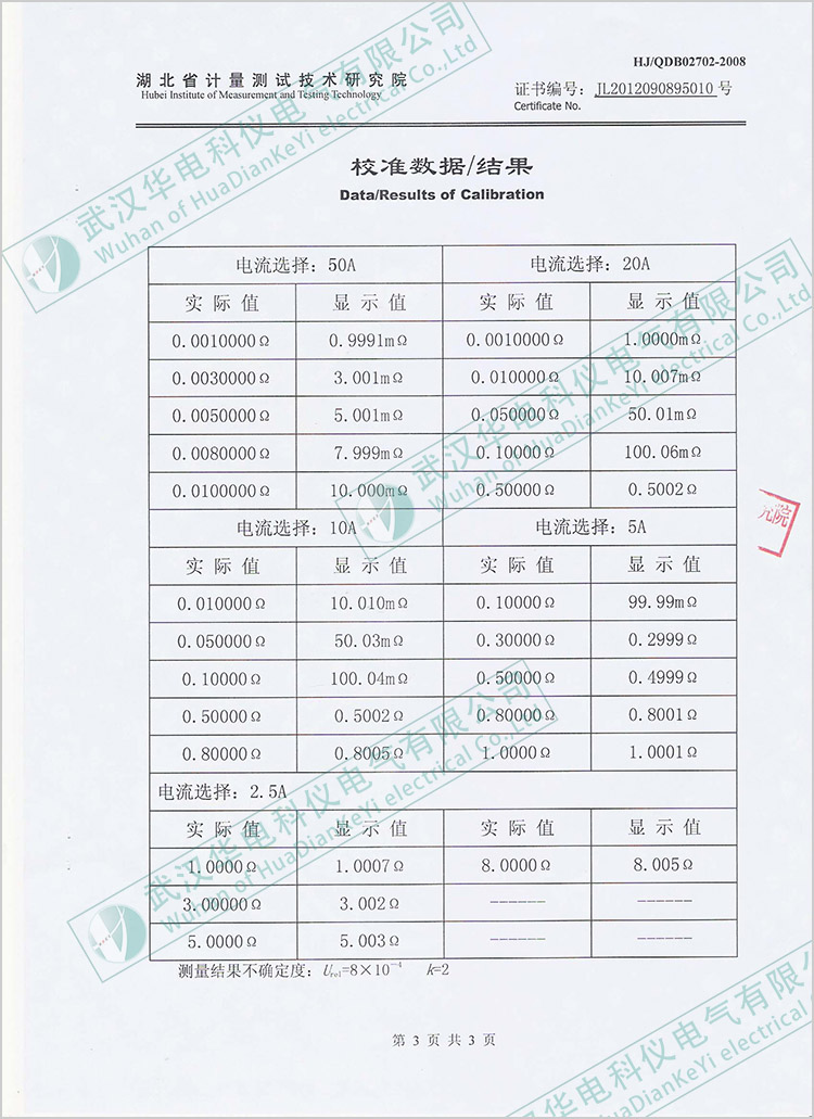 HDHL-100回路電阻測(cè)試儀校驗(yàn)證書(shū)