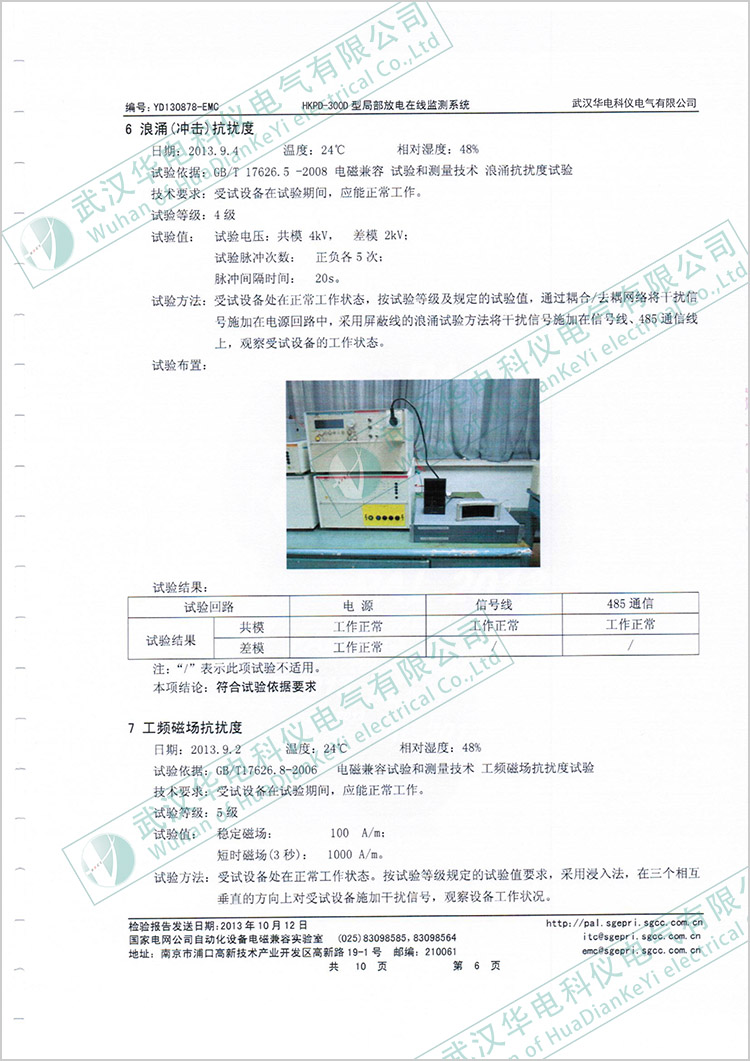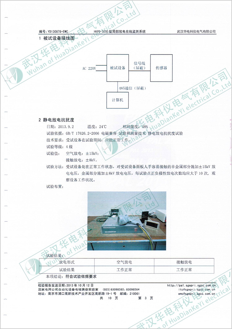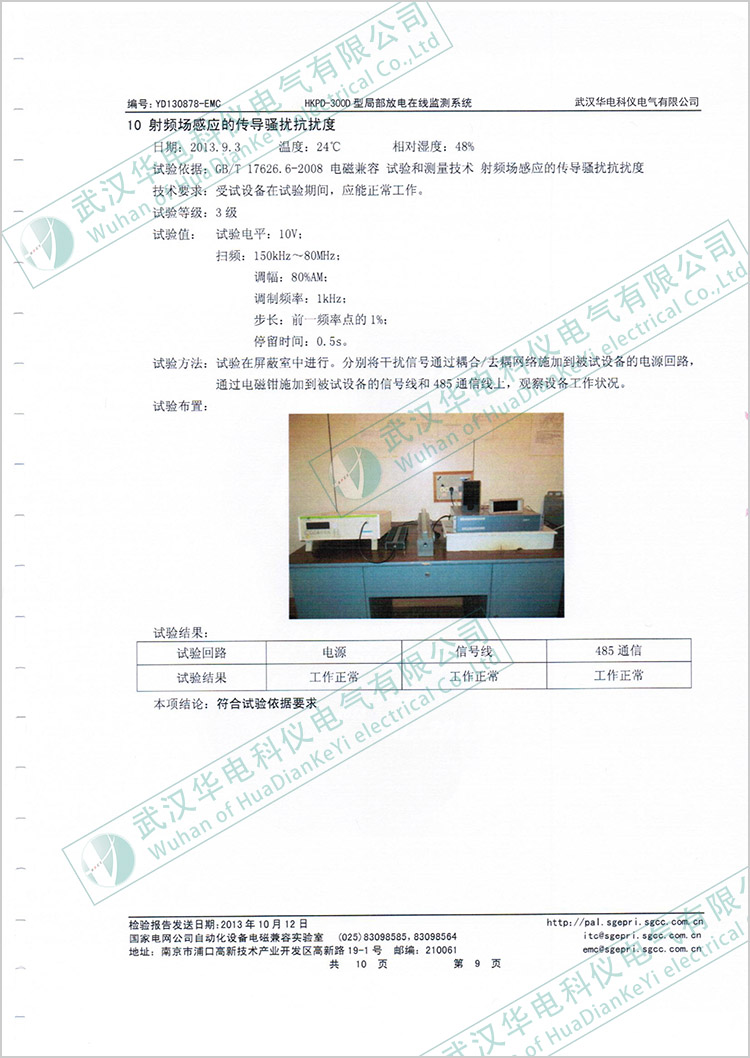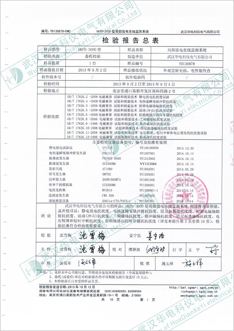 HKPD-300D局部放電在線監(jiān)測(cè)系統(tǒng)檢驗(yàn)報(bào)告