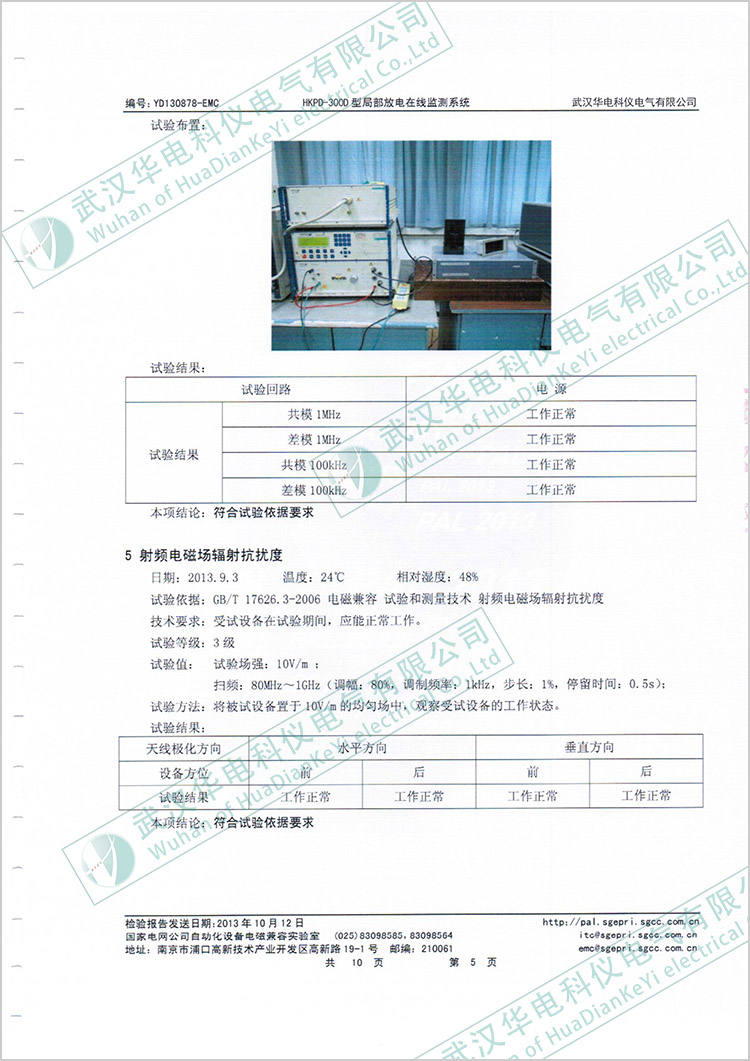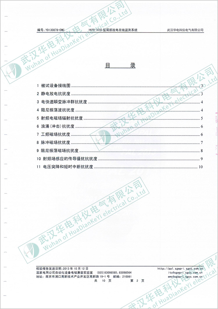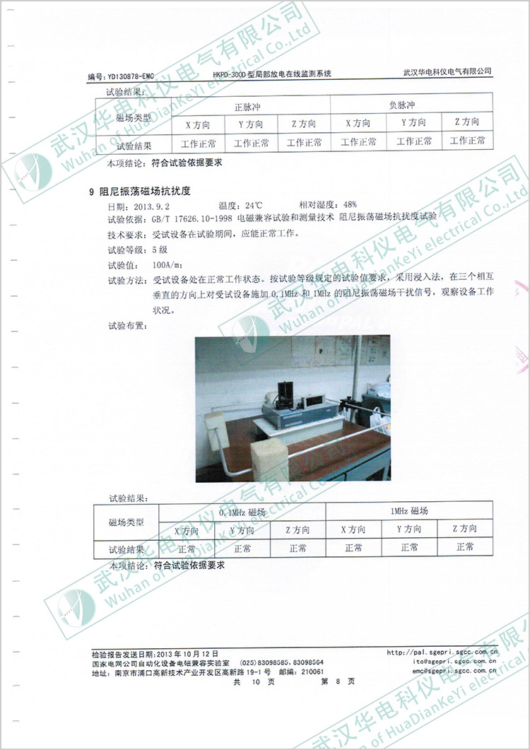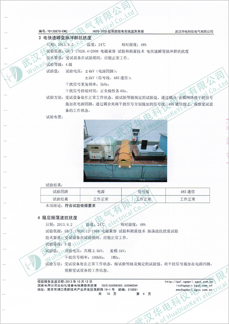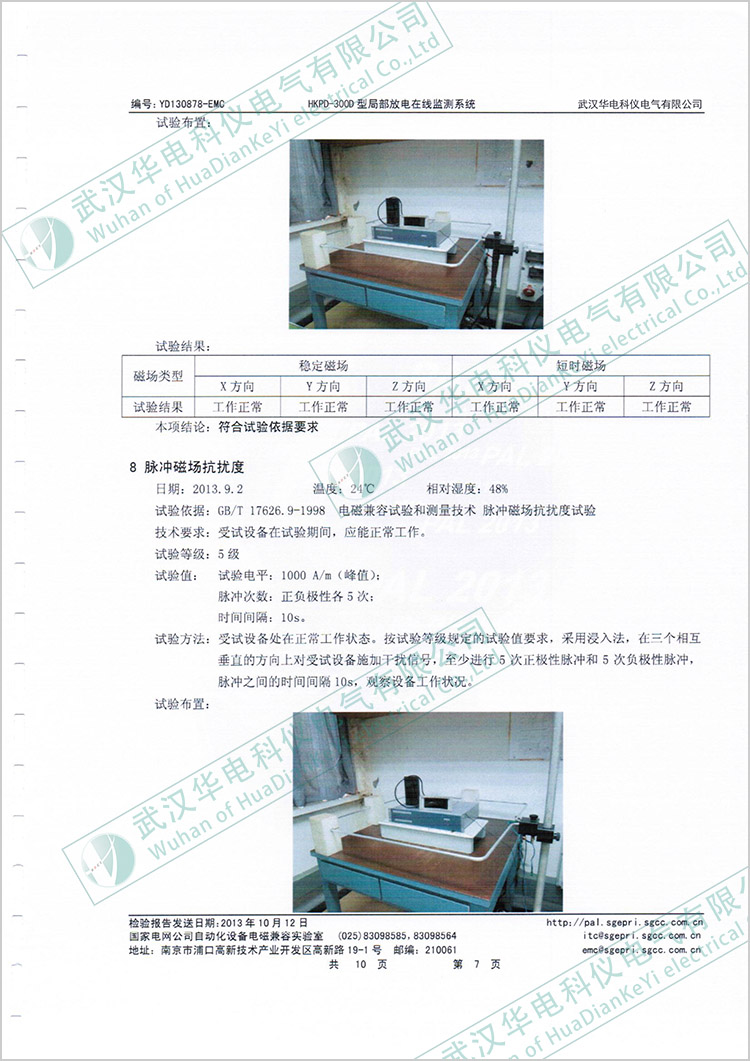 HKPD-300D局部放電在線監(jiān)測(cè)系統(tǒng)檢驗(yàn)報(bào)告