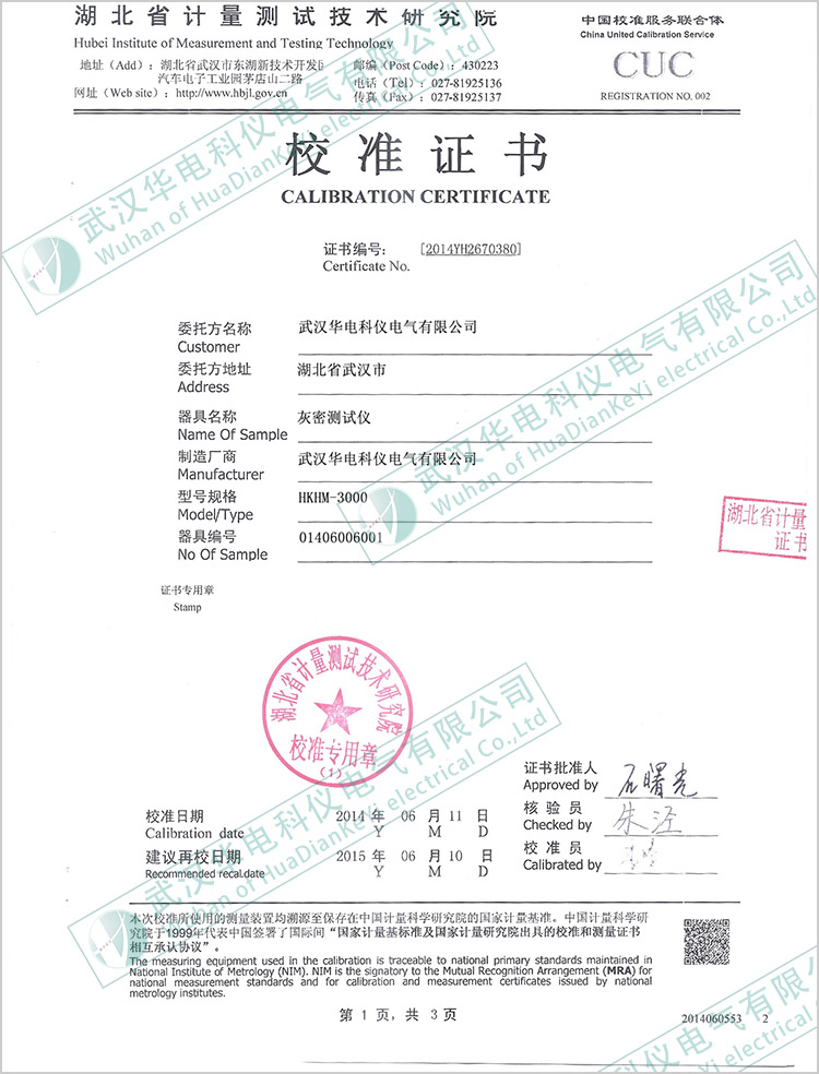 HKHM-3000灰密測試儀校準(zhǔn)證書