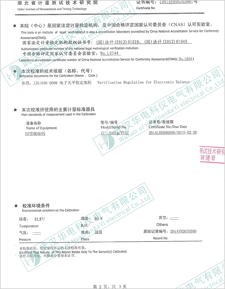 校準(zhǔn)證書