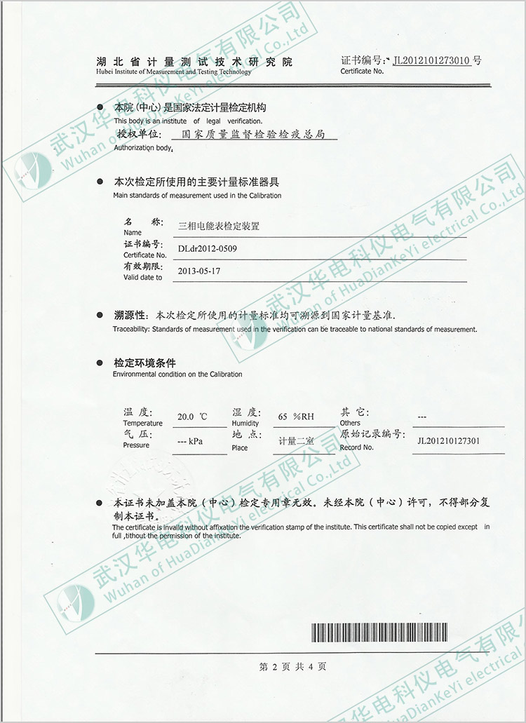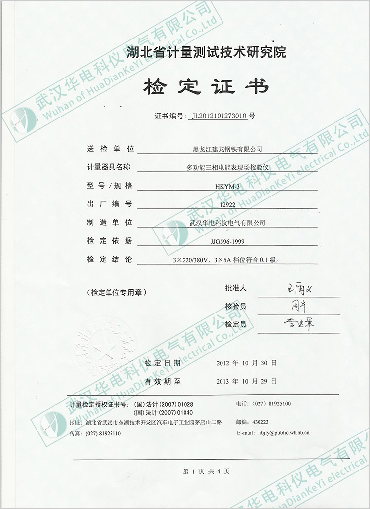 HKYM-3多功能三相電能表現(xiàn)場校驗(yàn)儀檢定證書