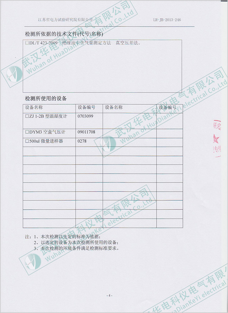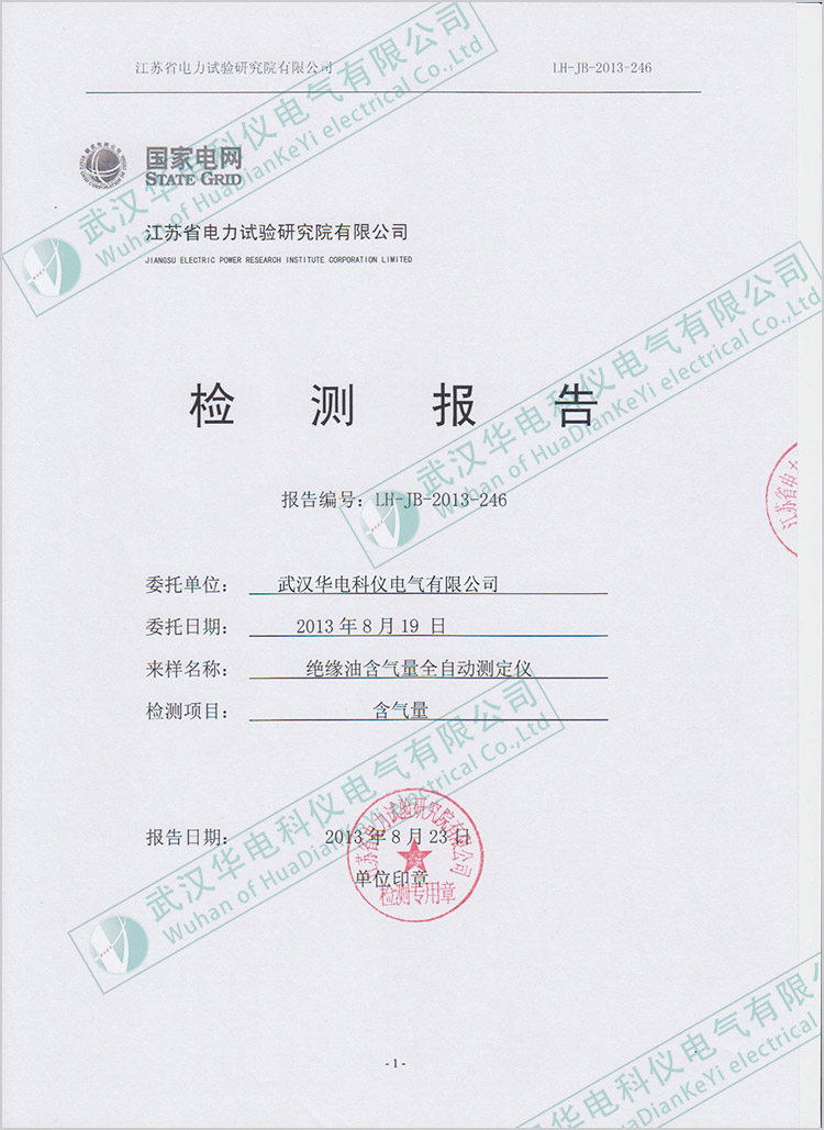 絕緣油含氣量全自動(dòng)測(cè)定儀檢測(cè)報(bào)告