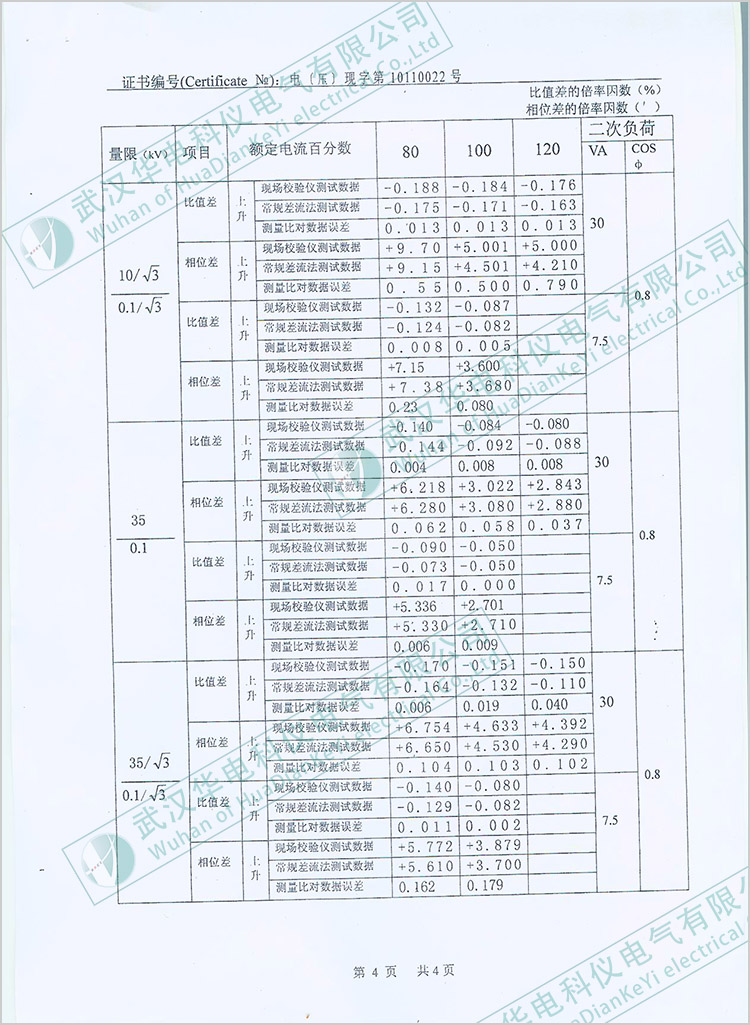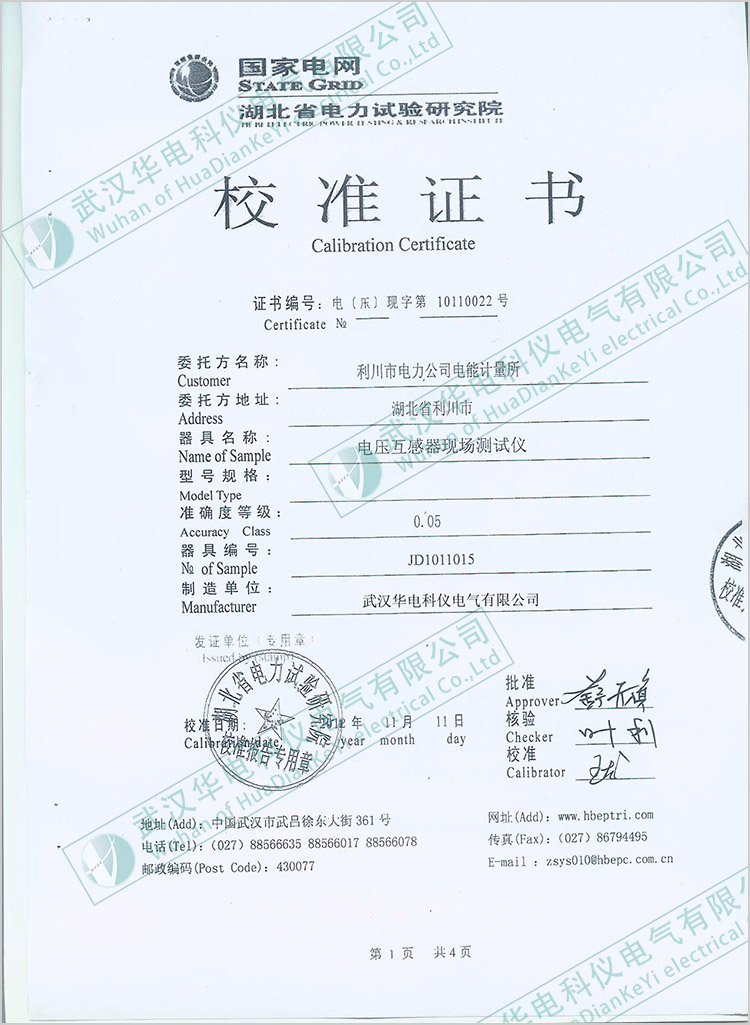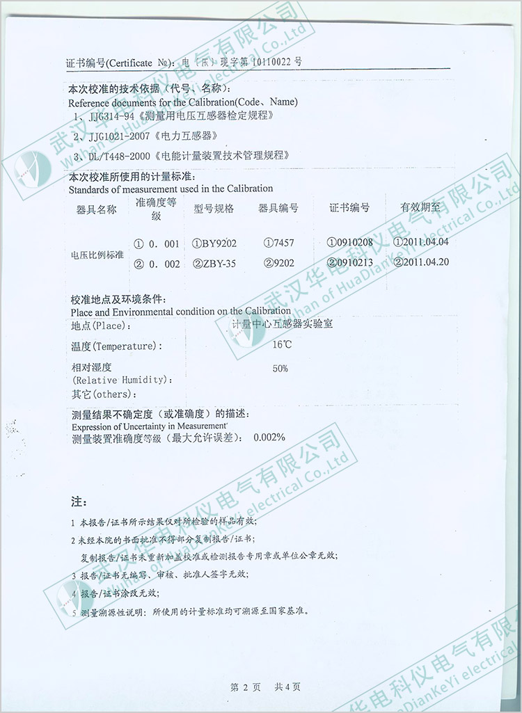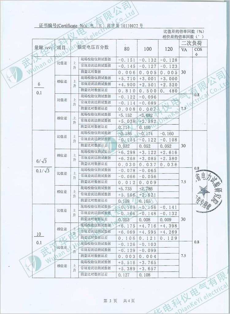 電壓互感器現(xiàn)場校驗(yàn)儀校準(zhǔn)證書