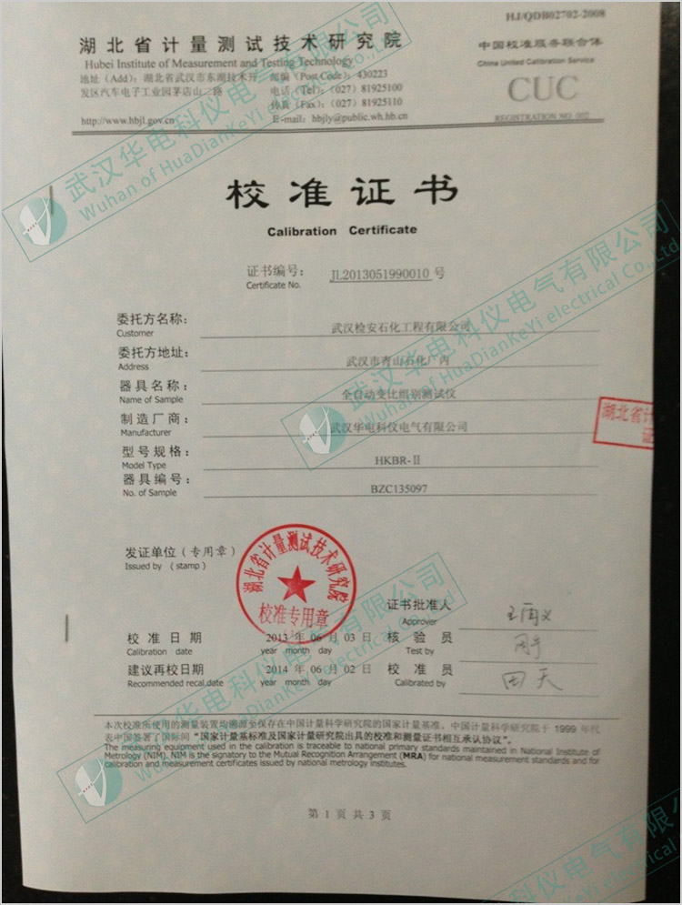 HKBS-303全自動(dòng)閉口閃點(diǎn)自動(dòng)測定儀校準(zhǔn)證書
