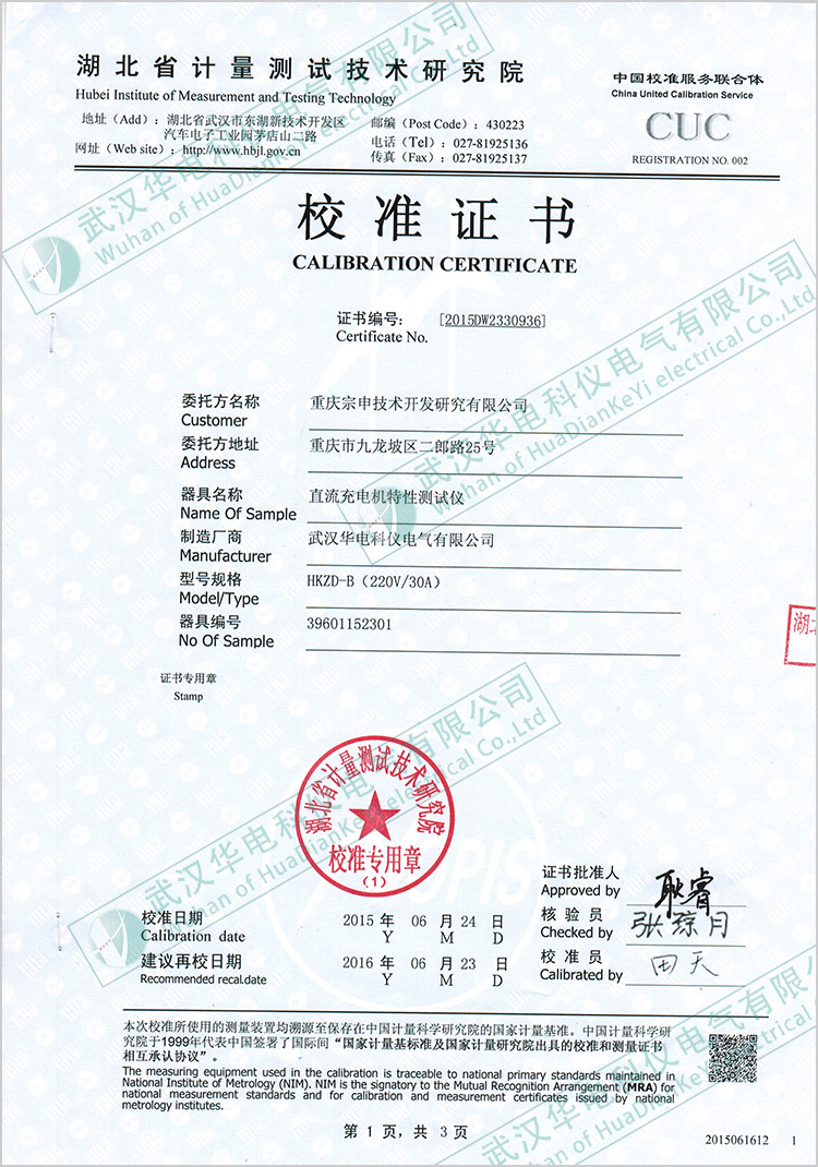 HKZD-B(220V30A)直流充電機(jī)特性測試儀校準(zhǔn)證書