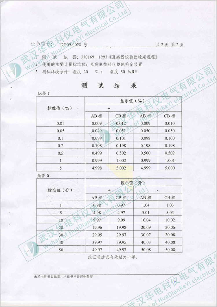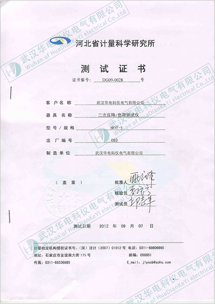HKYF-Y二次壓降/負荷測試儀測試報告