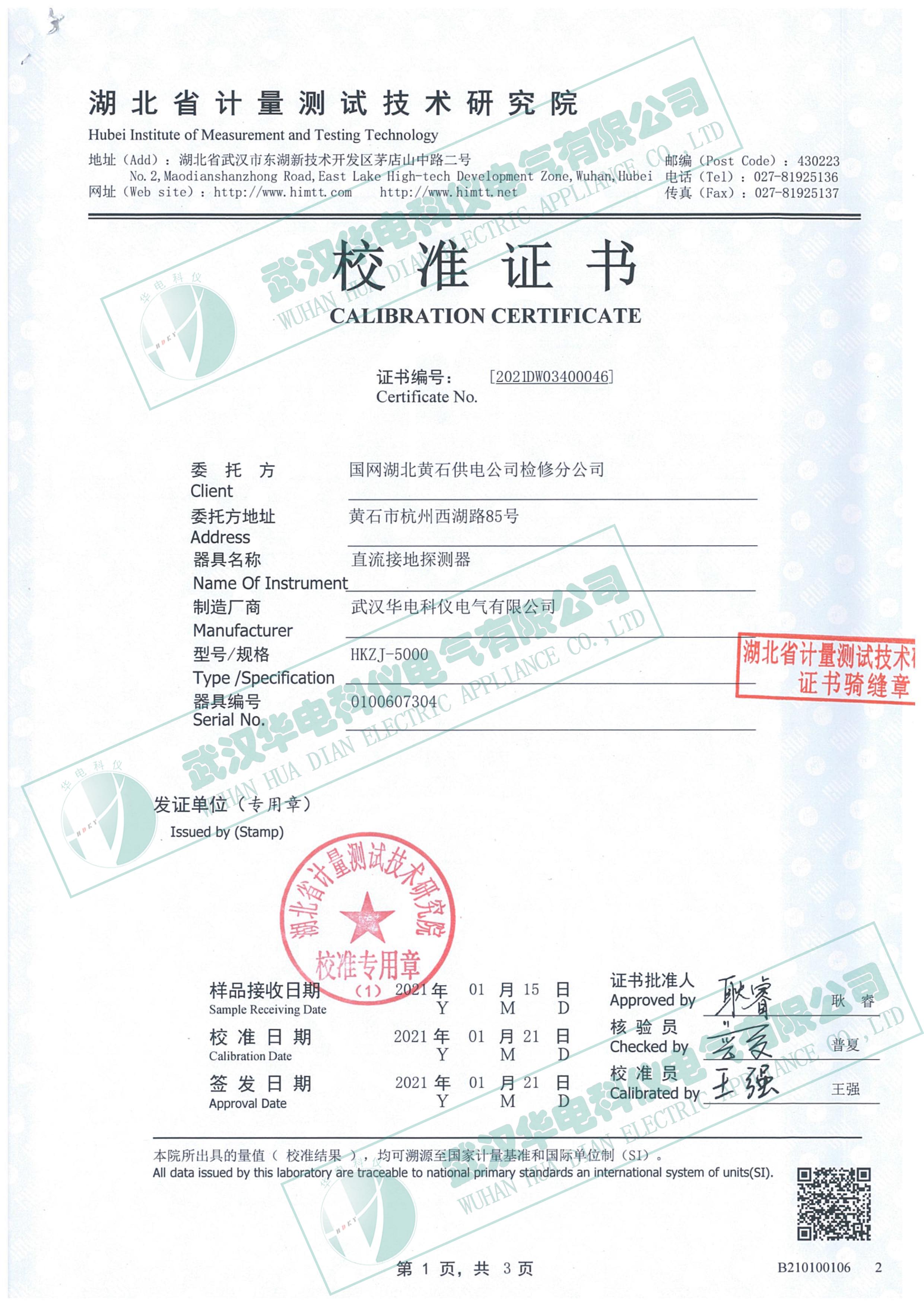 HKJZ-5000直流接地故障檢定報(bào)告2021-1-21