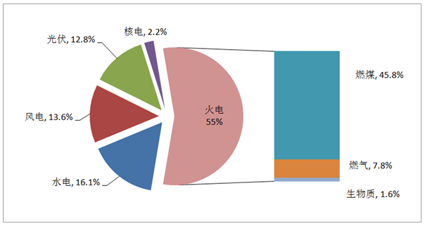 圖1 2021年全國電力裝機(jī)結(jié)構(gòu)圖