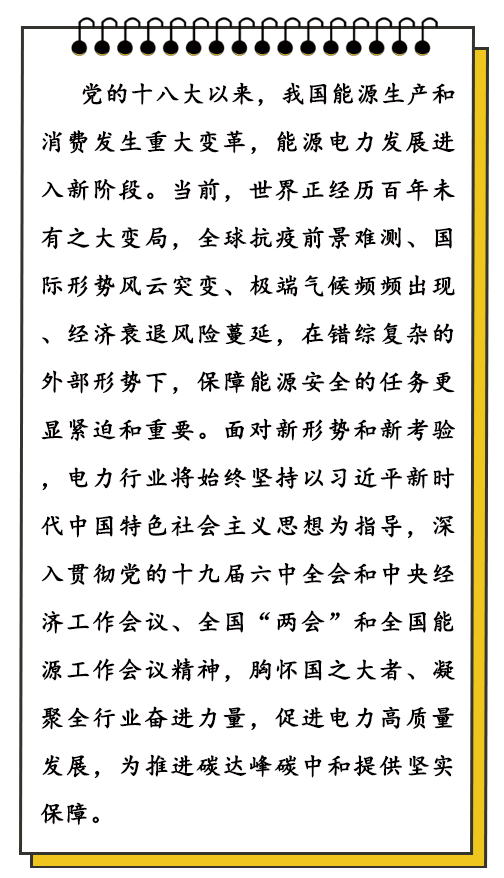 2021年是黨和國(guó)家歷史上具有里程碑意義的一年。我們隆重慶祝中國(guó)共產(chǎn)黨成立一百周年,如期全面建成小康社會(huì)、實(shí)現(xiàn)第一個(gè)百年奮斗目標(biāo),開啟全面建設(shè)社會(huì)主義現(xiàn)代化國(guó)家、向第二個(gè)百年奮斗目標(biāo)進(jìn)軍新征程。一年來,電力行業(yè)在以習(xí)近平同志為核心的黨中央堅(jiān)強(qiáng)領(lǐng)導(dǎo)下,沉著應(yīng)對(duì)世紀(jì)疫情和供需緊張帶來的嚴(yán)峻挑戰(zhàn),統(tǒng)籌做好電力保供和推動(dòng)能源轉(zhuǎn)型,各項(xiàng)事業(yè)取得新的成就,實(shí)現(xiàn)了電力行業(yè)“十四五”發(fā)展良好開局。