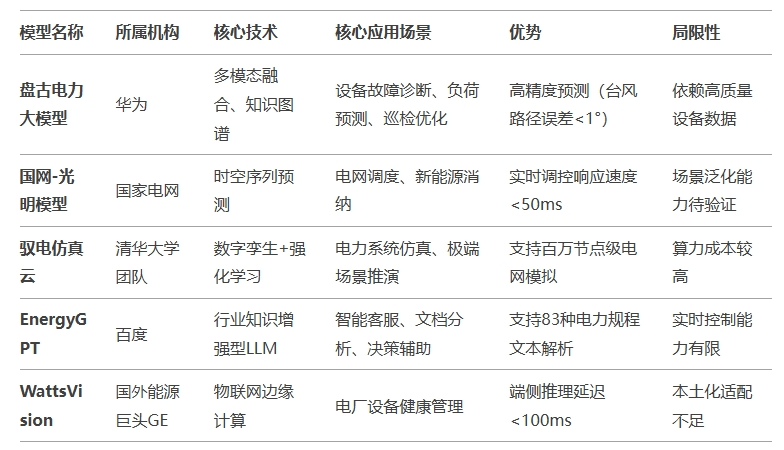 目前電力行業(yè)的大模型應(yīng)用尚處于探索階段,但已有多個(gè)企業(yè)和研究機(jī)構(gòu)推出了針對(duì)性解決方案。以下對(duì)主流電力大模型進(jìn)行總結(jié)和對(duì)比分析,并補(bǔ)充行業(yè)趨勢(shì)洞察: