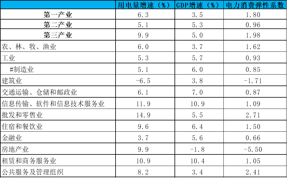 具體到各行業(yè)用電及GDP增速,請(qǐng)看下表: