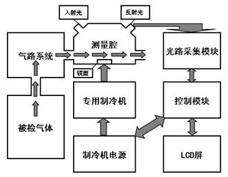 | 制冷機模塊 | 由微型制冷機和制冷機電源組成,主要負責對鏡面降溫及加熱、采集鏡面溫度并發(fā)送至控制模塊。 |