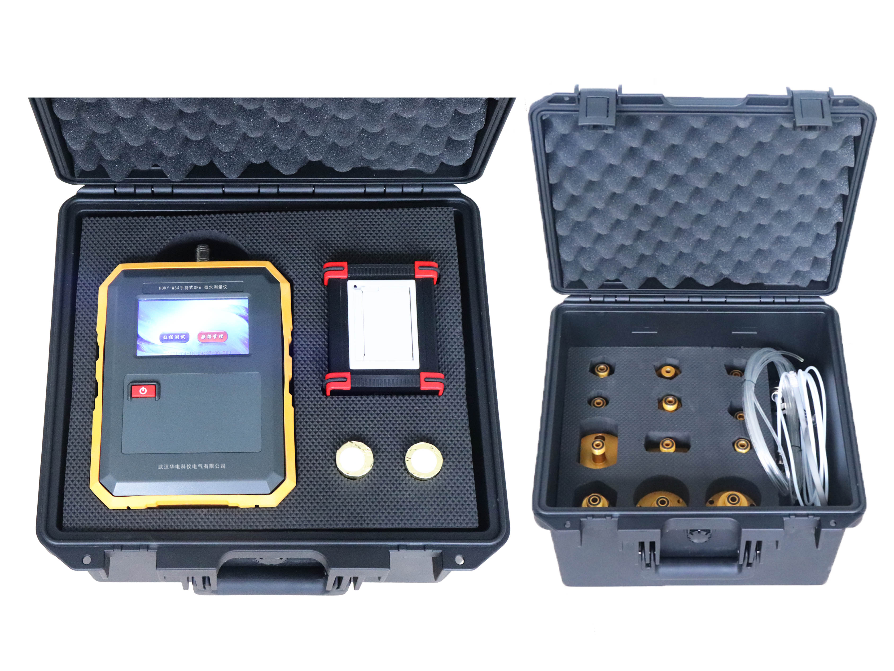 HKMD-B型SF6密度繼電器校驗(yàn)儀,是一種智能化全自動(dòng)的SF6密度繼電器校驗(yàn)儀器。該儀器采用單周期指令微機(jī)技術(shù),運(yùn)行速度是普通單片機(jī)的10倍,能對(duì)指針式接點(diǎn)輸出及智能式電流輸出的SF6密度繼電器進(jìn)行現(xiàn)場(chǎng)校驗(yàn),采用中斷方式對(duì)密度繼電器的動(dòng)作進(jìn)行實(shí)時(shí)捕獲,因此該儀器測(cè)量更準(zhǔn)確及時(shí)。本儀器是SF6氣體任意環(huán)境溫度下的壓力進(jìn)行標(biāo)準(zhǔn)換算的一種便攜式校驗(yàn)儀器,它也可以對(duì)SF6密度表、壓力表進(jìn)行自動(dòng)校驗(yàn)。