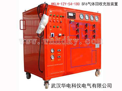 HKLH-12Y-54-180型SF6氣體回收裝置具有回收、充放、凈化、抽真空、貯存、灌瓶等綜合性功能,系統(tǒng)比較完全。各功能的串聯(lián)或切換主要通過(guò)操作集中于面板一側(cè)的電控箱和球閥來(lái)完成。