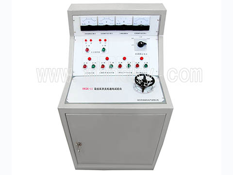 HKGK-II型高低壓開關(guān)柜通電試驗(yàn)臺(tái)用于高低壓開關(guān)柜生產(chǎn)廠家對(duì)所生產(chǎn)的高低壓開關(guān)柜進(jìn)行出廠前的各項(xiàng)通電試驗(yàn)。它能提供各種交、直流電源,便于對(duì)開關(guān)柜的檢測(cè),提高工作效率。