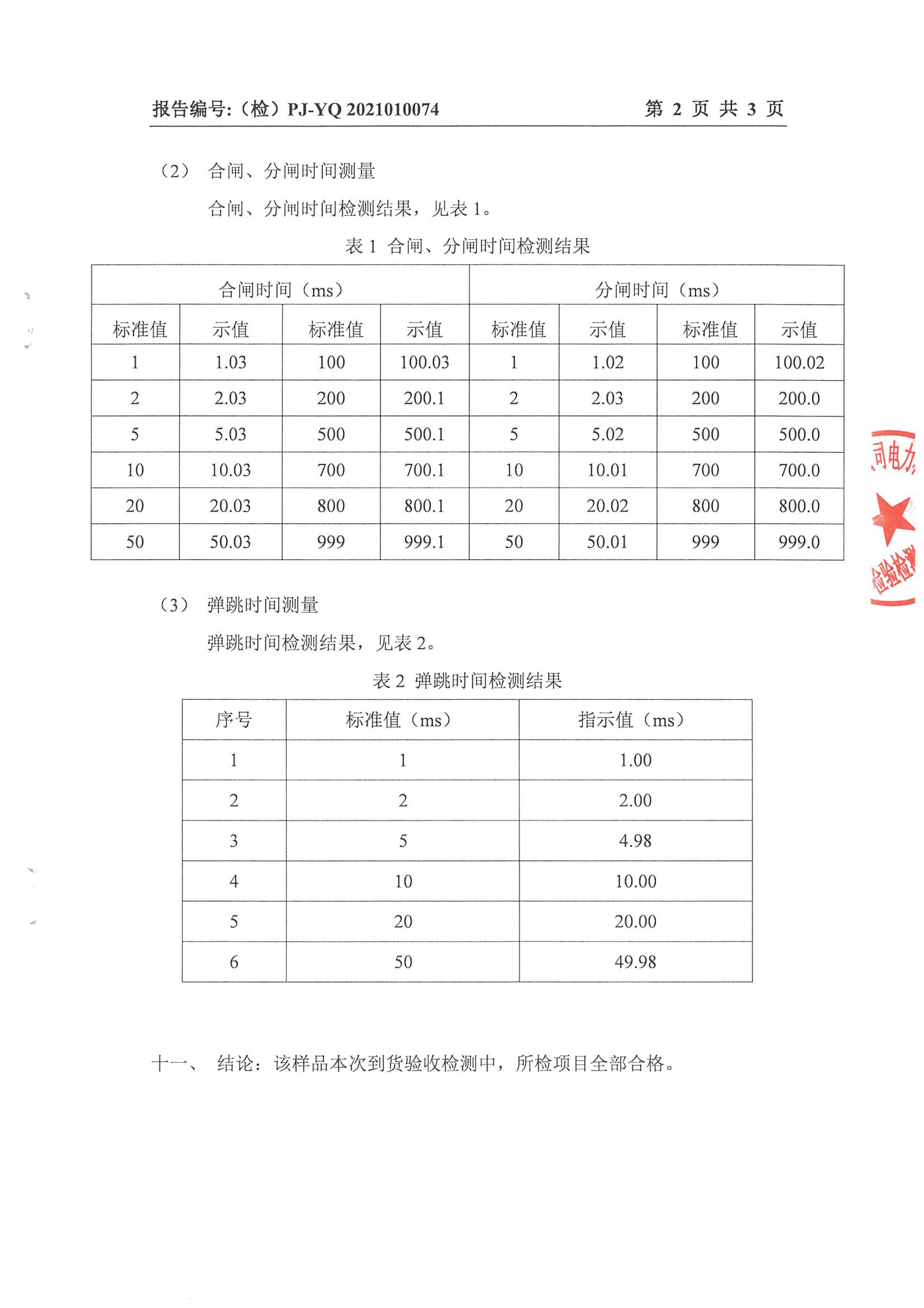 4.彈 跳:每斷口的合閘彈跳時間,彈跳次數,彈跳過程,彈跳波形。