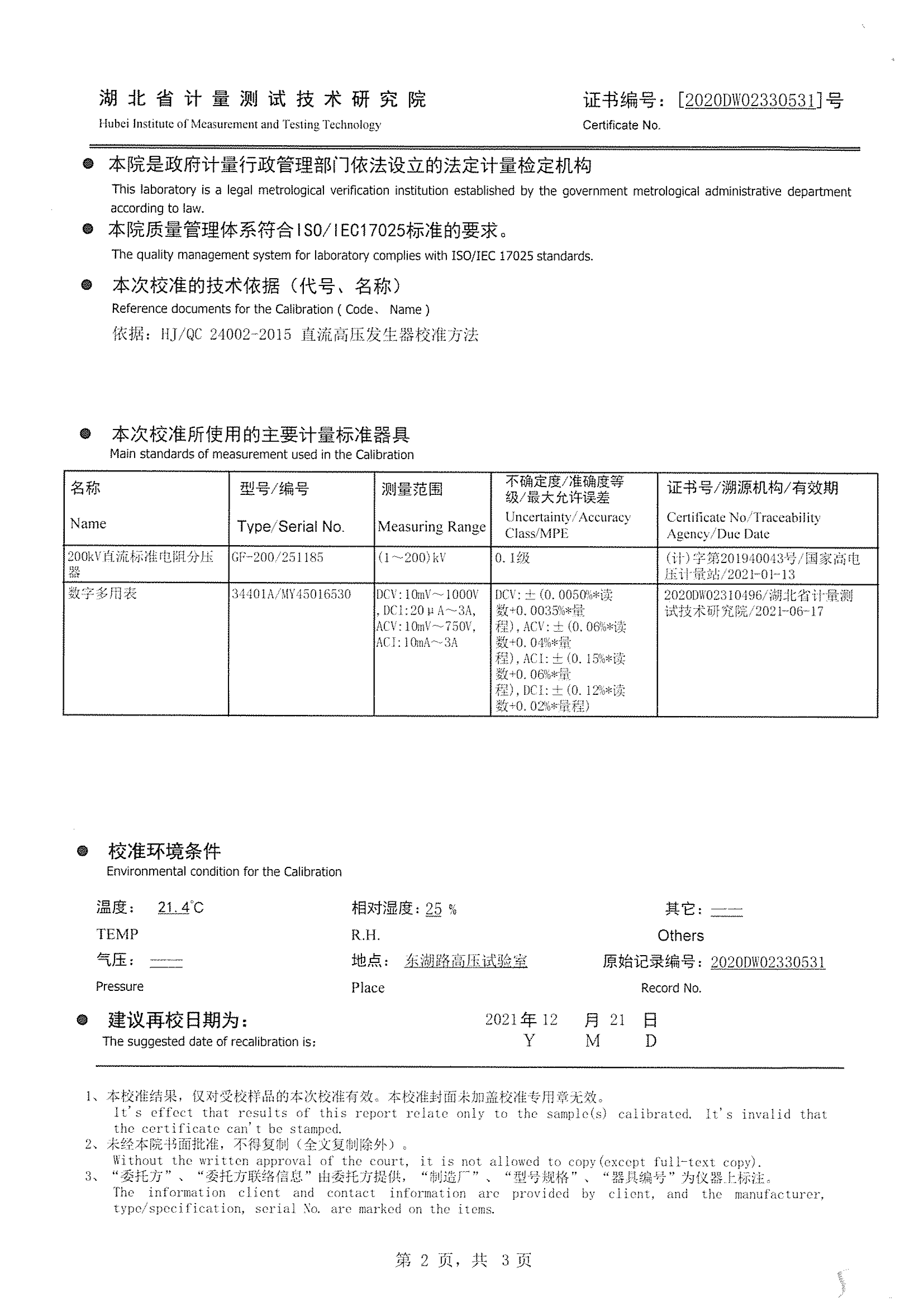 | 電壓測量精度 | 數(shù)顯表±(1.0 %讀數(shù)±0.2KV) |