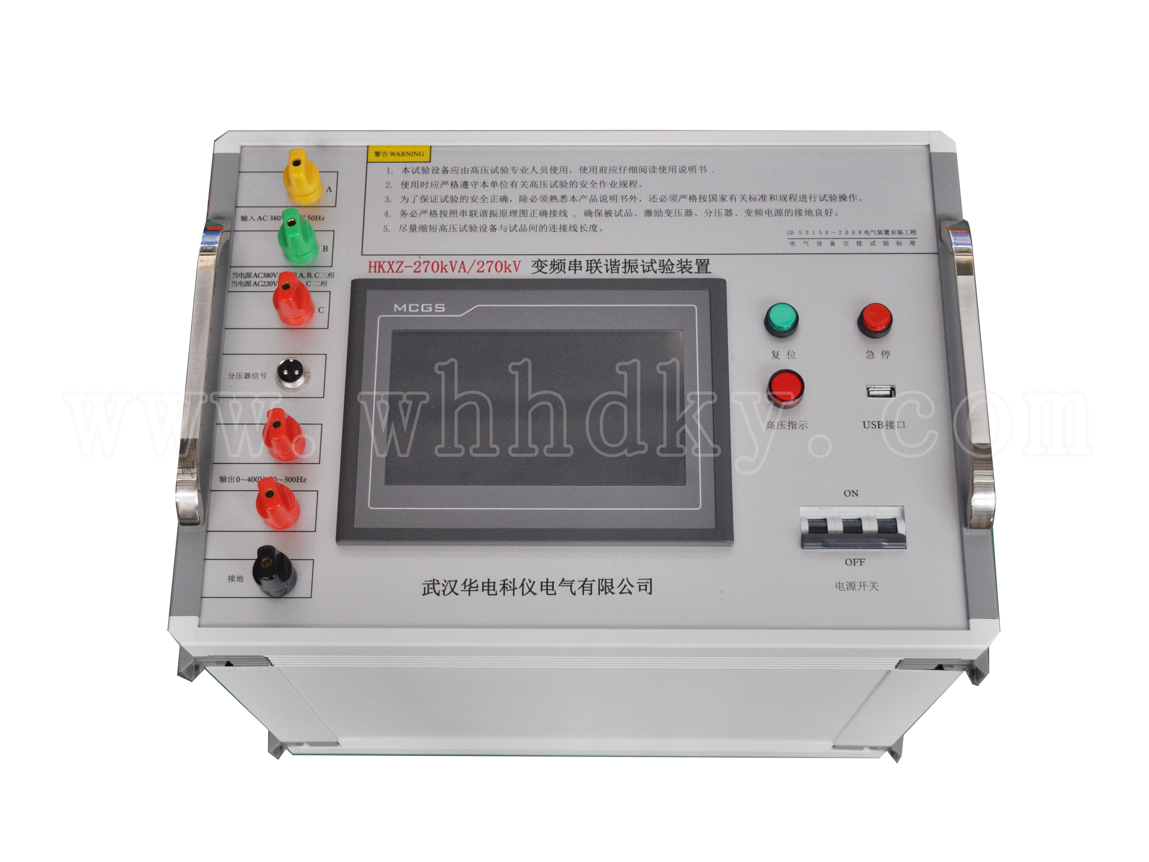 11. 保護(hù)功能: 對(duì)被試品具有過(guò)流、過(guò)壓及試品閃絡(luò)保護(hù)(詳見(jiàn)變頻電源部分);