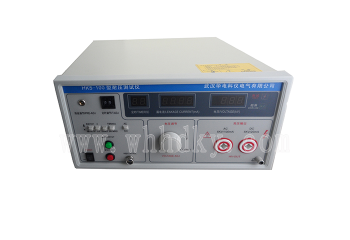 HK5-100耐壓測試儀(又稱耐壓試驗裝置)是通用型的高壓測試儀器,廣泛用于電工器材、膠木電器、變壓器、電源線、電能表、電機(jī)、電源插頭座、電纜線等的耐壓測試,以及各種電子電氣產(chǎn)品的耐壓測試。隨著國家安全標(biāo)準(zhǔn)的建立,使耐壓測試儀成為各種無線電廠、電子產(chǎn)品等生產(chǎn)廠家必不可少的耐壓測試儀器。